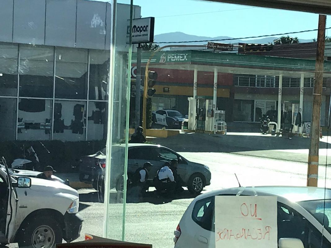 Fue en el estacionamiento del OXXO que funciona en el 9 Berriozábal lugar donde se ubica la gasolinera en la cual regularmente se abastecen las unidades de la Secretaría de Seguridad Pública Estatal que se desarrollaran los hechos siendo cerradas varias calles a la redonda evitando la circulación de vehículos civiles con ello para evitar que alguna persona resultara lesionada.