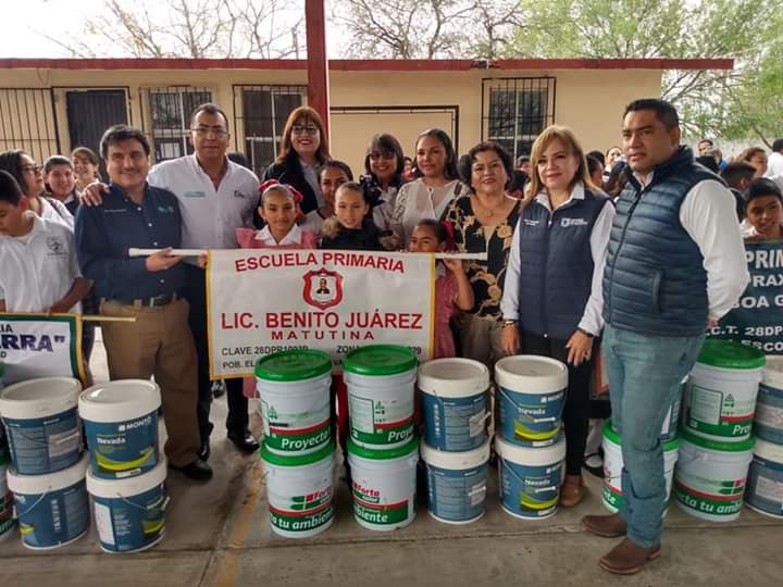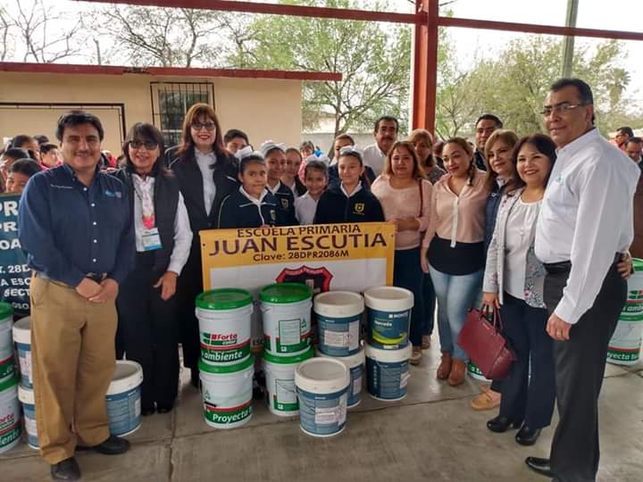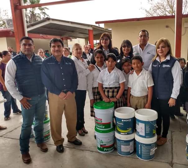 Gracias al apoyo del Gobernador del Estado, Francisco García Cabeza de Vaca por crear ambientes adecuados para el proceso educativo, la Secretaría de Educación de Tamaulipas a través de la Unidad Ejecutiva entregó cubetas de pintura a 10 Escuelas del Nivel Básico en el municipio de Valle Hermoso.