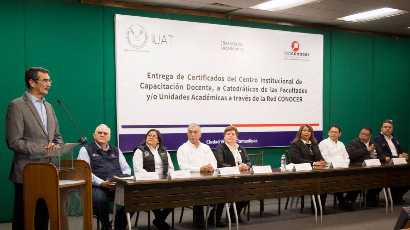 El Rector José Andrés Suárez Fernández encabezó la ceremonia de entrega de certificaciones de la Red CONOCER a un total de 209 docentes de las facultades, unidades académicas y escuelas de la Universidad Autónoma de Tamaulipas (UAT) que se capacitaron en estándares nacionales de competencias académicas y profesionales.