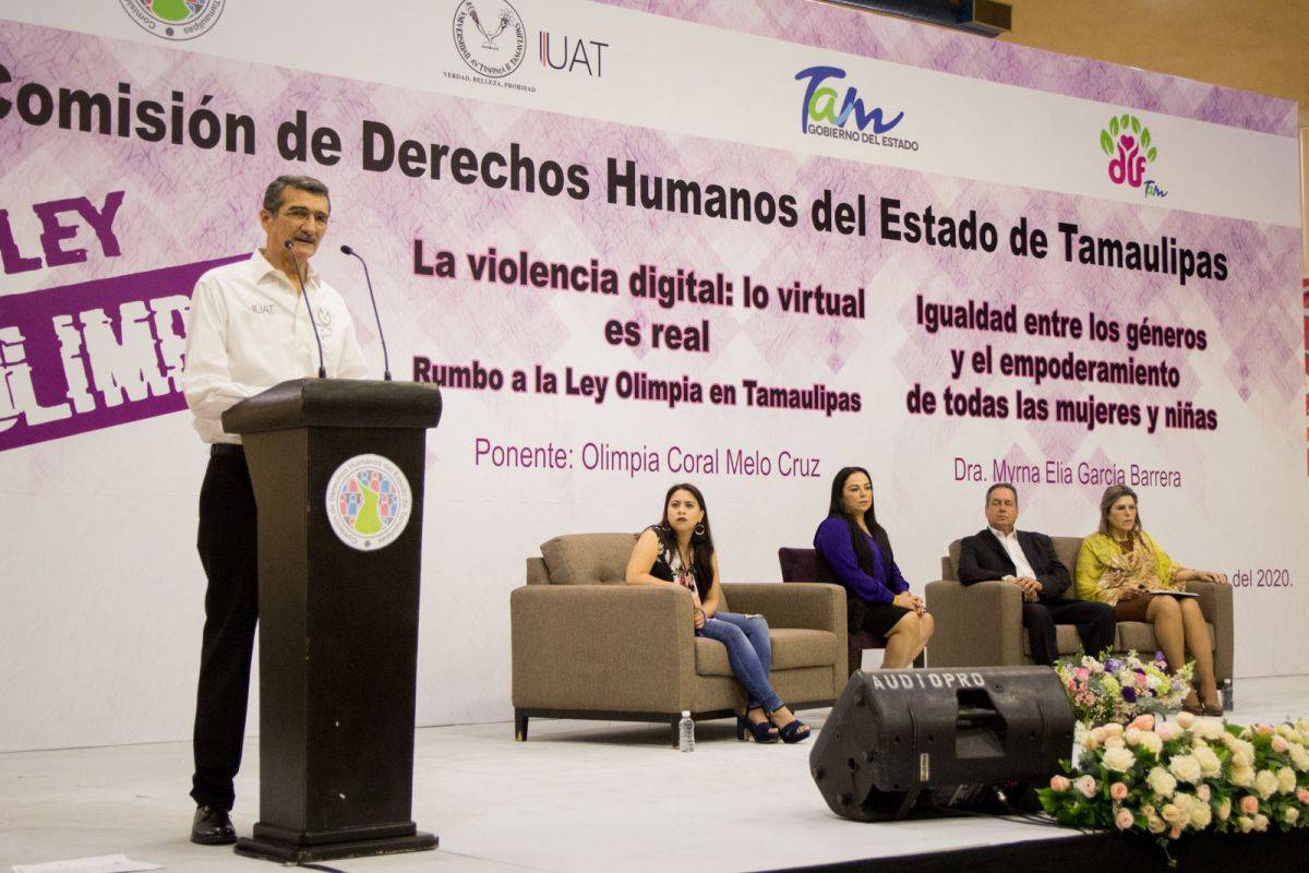 Ante cientos de estudiantes de los diferentes niveles educativos, se expusieron en la Universidad Autónoma de Tamaulipas (UAT) las conferencias, “La Violencia Digital: lo virtual es real” (rumbo a la Ley Olimpia en Tamaulipas), por la ponente Olimpia Coral Melo Cruz; y el tema, “Igualdad entre los géneros y el empoderamiento de todas las mujeres y niñas”, por la Dra. Myrna Elia García Barrera.