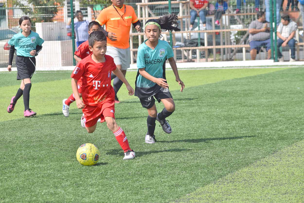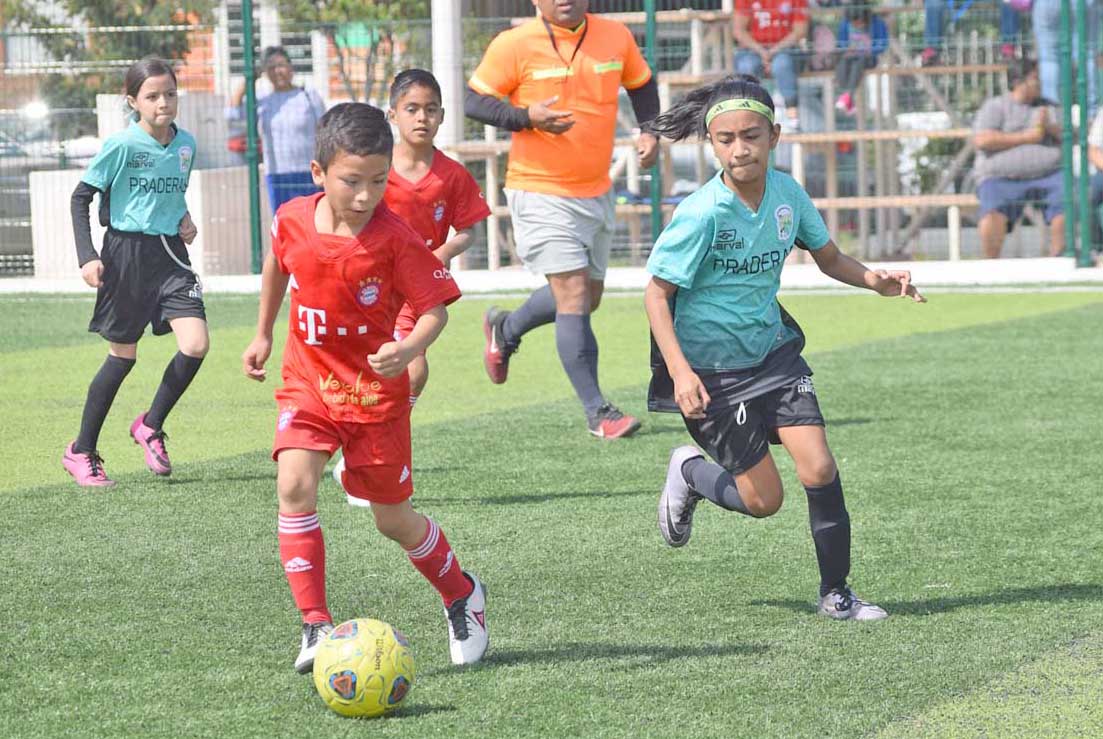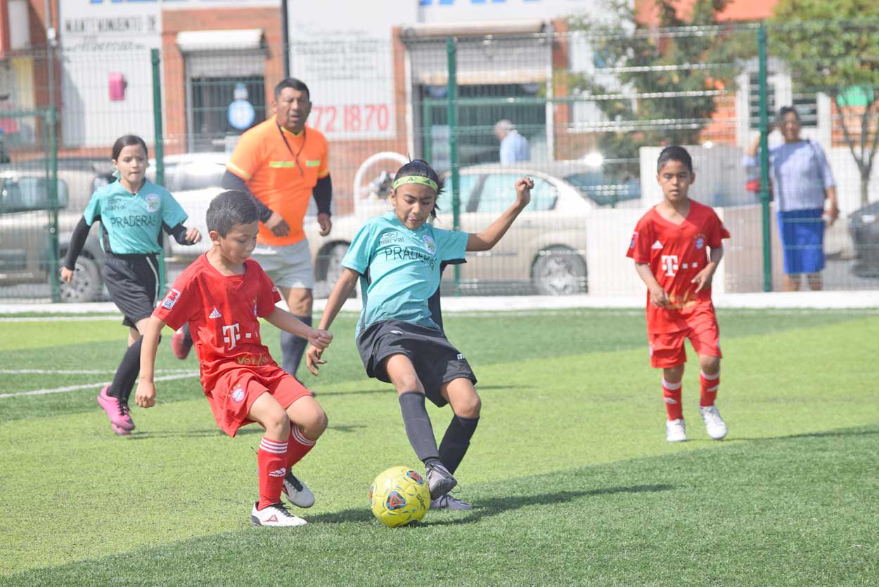 El primer tiempo de este cotejo estuvo muy parejo, incluso el equipo de Praderas se fue adelante al minuto 6 con anotación de Arturo Castillo a pase de Aranza Rangel.