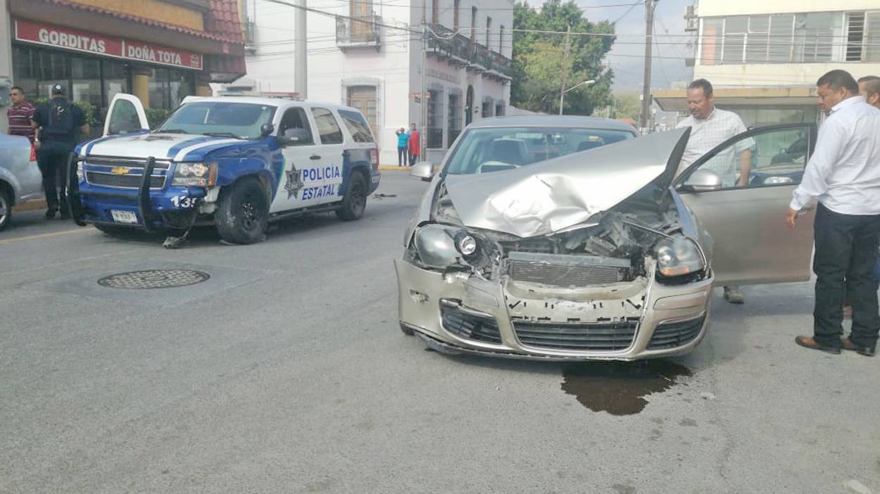 La imprudente maniobra fue la causa para ser impactada por una camioneta blindada Tahoe habilitada como patrulla de la Policía Estatal que se desplazaba con preferencia de circulación de poniente a oriente proyectando el Bora varios metros.