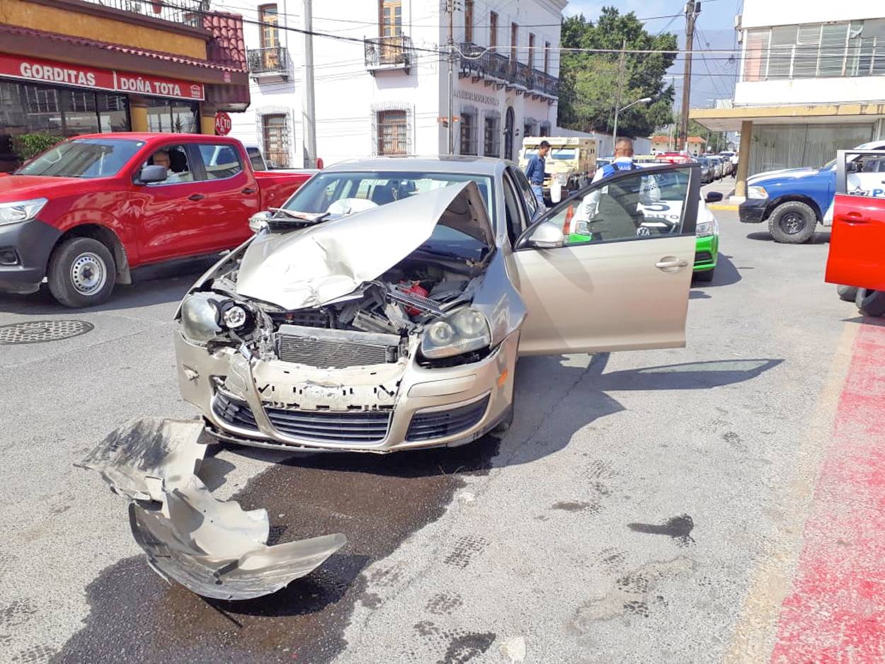 Con fuerte dolor en el cuello así como de golpes en diferentes partes del cuerpo resulto ama de casa quien al manejar un automóvil sobre calles del primer cuadro de la ciudad participara en percance vial viéndose involucrada unidad blindada propiedad del gobierno estatal.