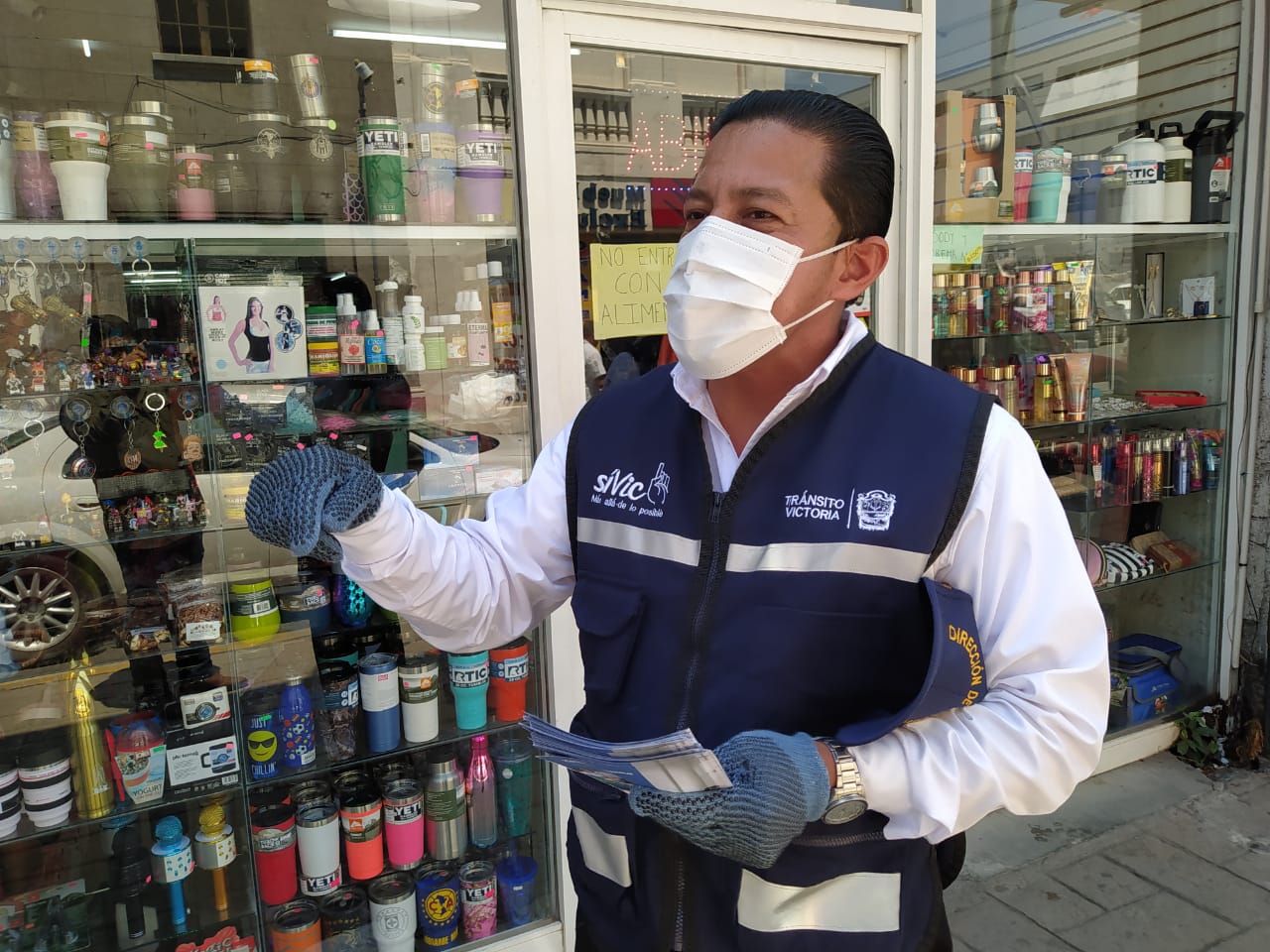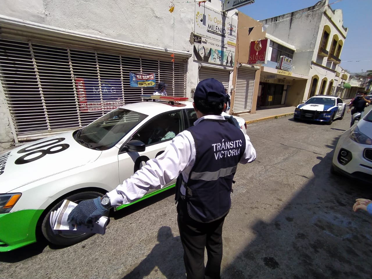 Con perifoneo en patrullas de Tránsito municipal, de la Policía Estatal y elementos pie tierra se hizo un recorrido desde la calle Ocho para llegar a la esquina del 15 Hidalgo.