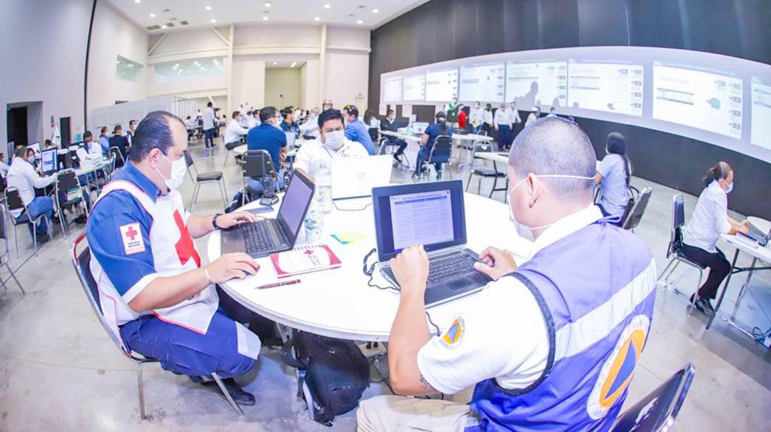En el Centro de Mando Covid-19 participan la secretaría de Salud, IMSS, ISSSTE, Protección Civil, Defensa Nacional, secretaría de Marina, Guardia Nacional, secretaría de Seguridad Pública y Cruz Roja para monitorear la evolución de los casos en los 43 municipios de la entidad, y atender las situaciones de emergencia que puedan presentarse.