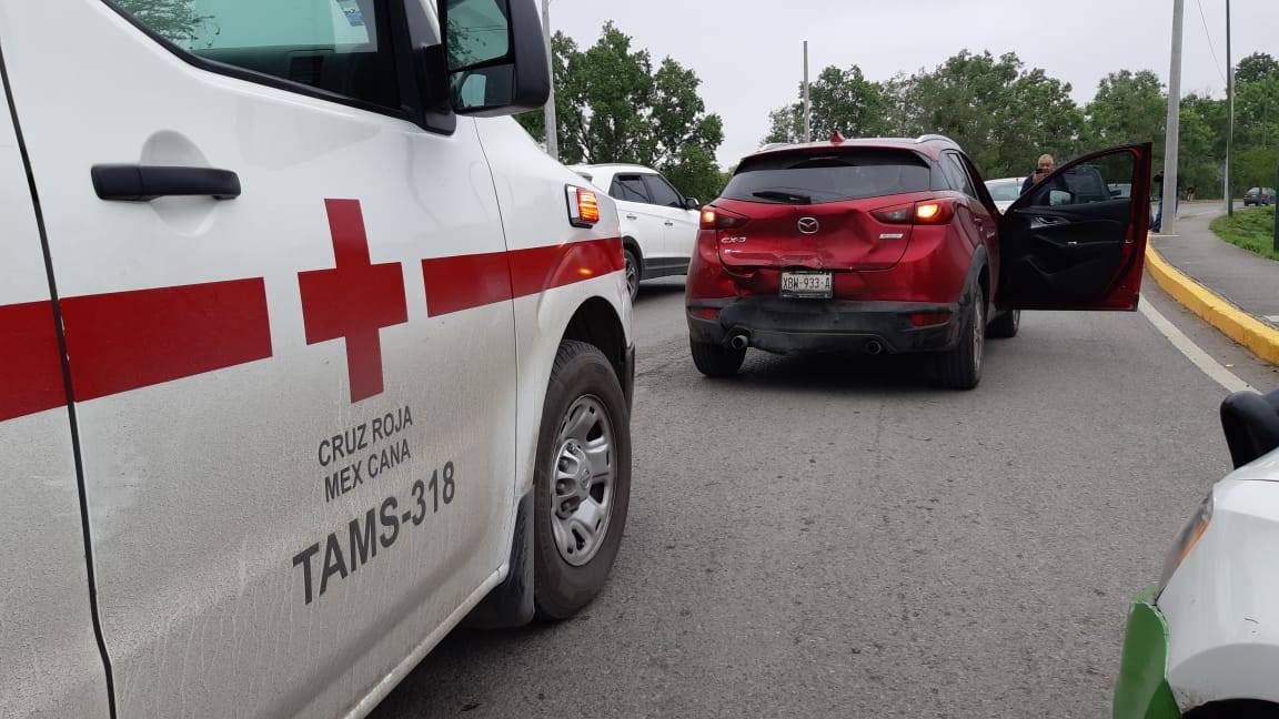 Después de ser atendida en el lugar por los técnicos en urgencias médicas una mujer que viajaba de acompañante a bordo del vehículo Mazda fue trasladada a un hospital.