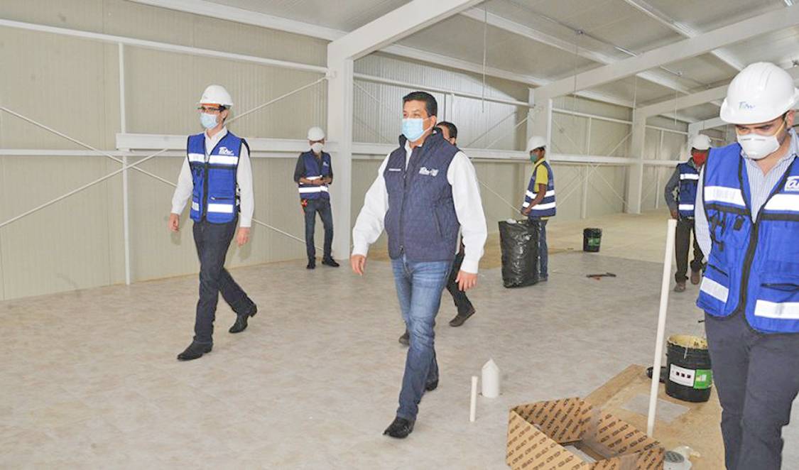 García Cabeza de Vaca supervisó los avances de la construcción del Hospital Móvil COVID-19 que se ubica contiguo al Hospital General de Ciudad Victoria.