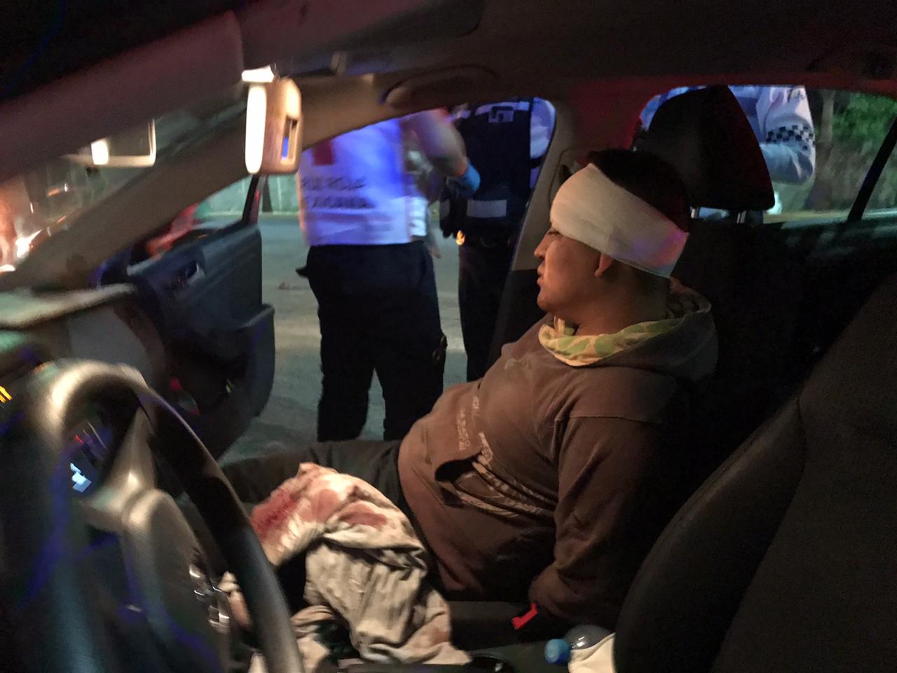 Los técnicos en urgencias médicas también atendieron al conductor del Jetta, ya que presentaba una herida en la cabeza.