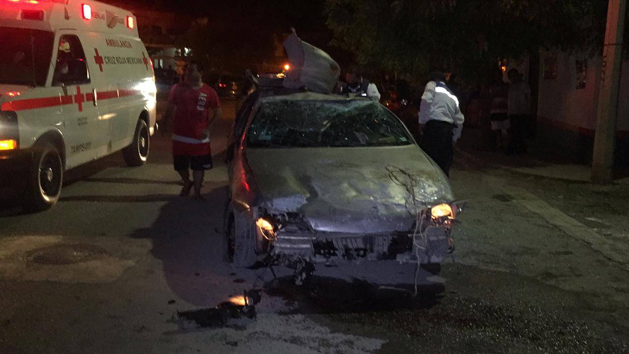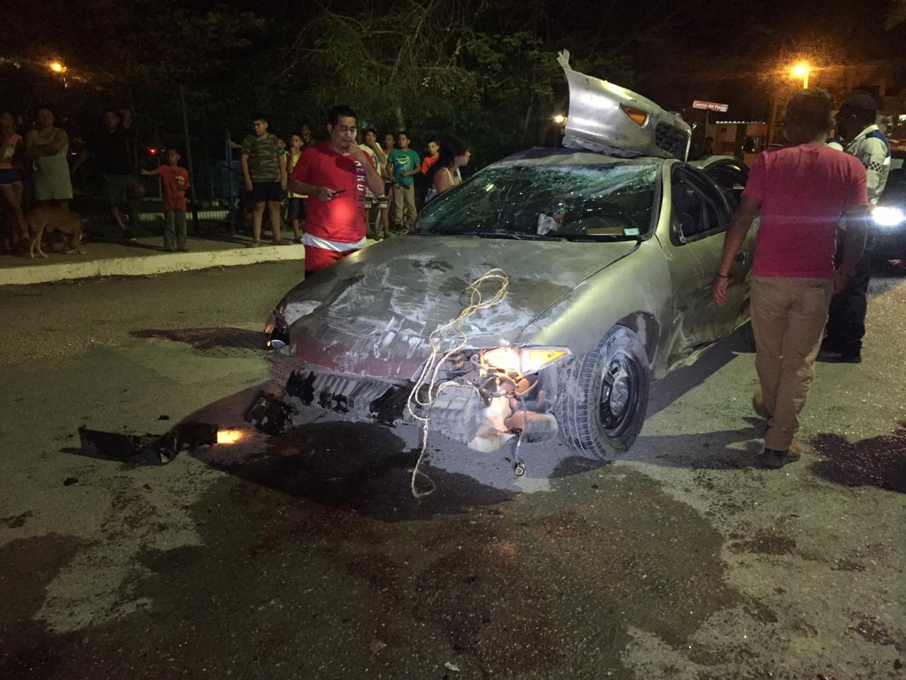 El aparatoso accidente registrado la noche de ayer viernes ocurrió cuando el automóvil marca Chevrolet tipo Cavalier circulaba por la calle Camino del Pueblo.