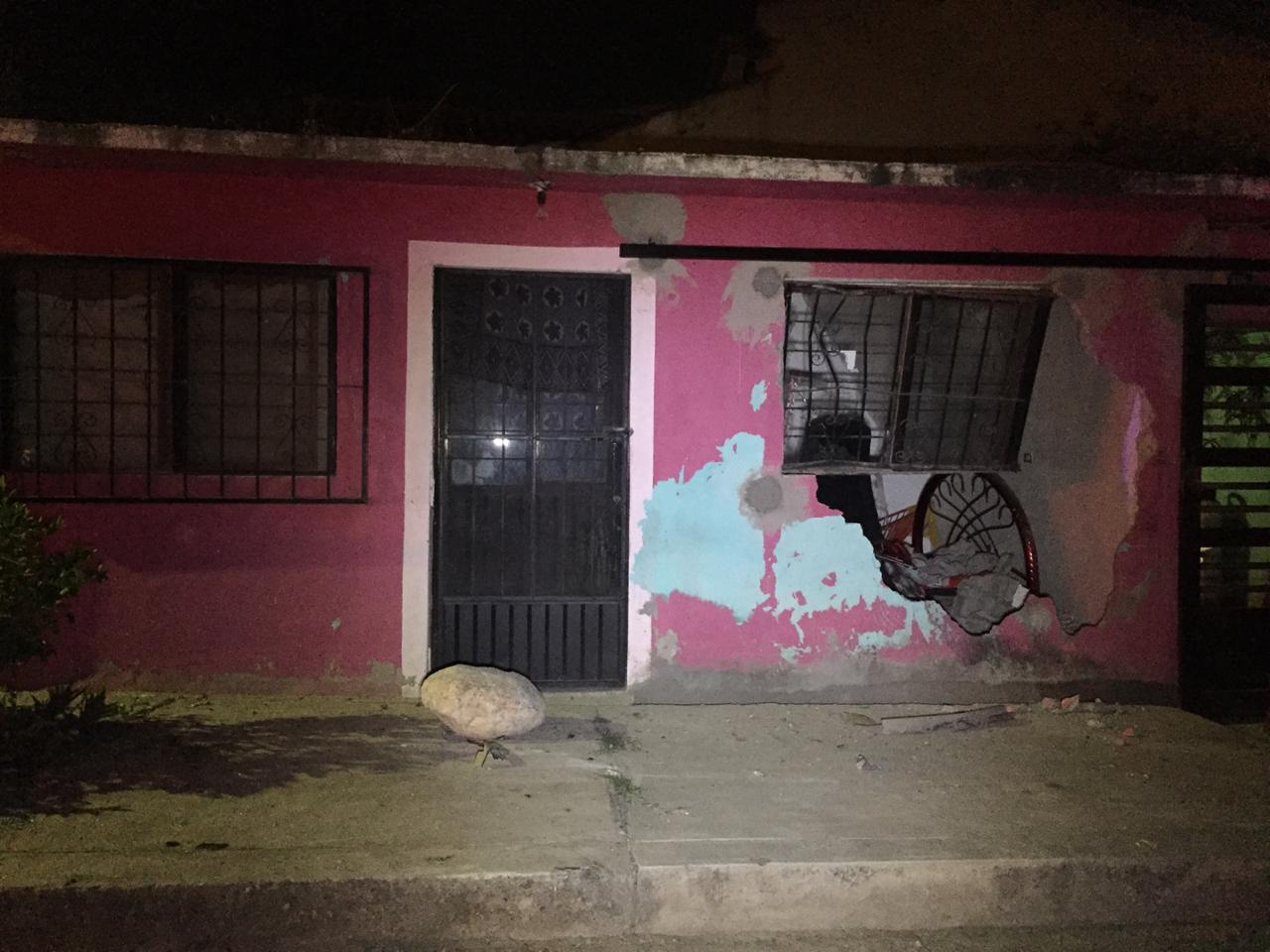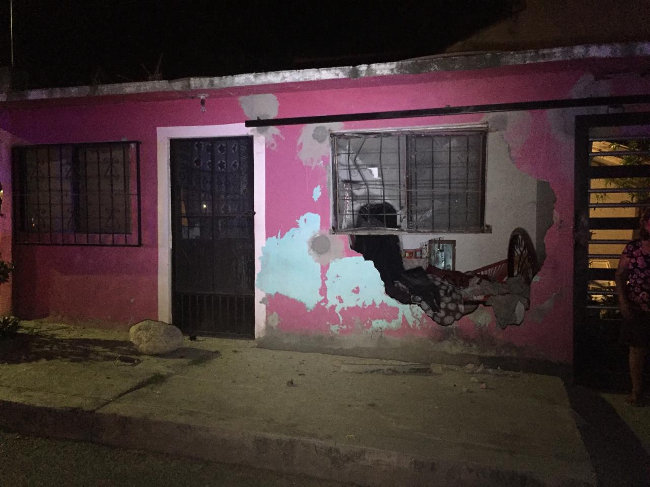 A la altura de la calle Brasil presuntamente a consecuencia de una falla mecánica el vehículo quedó fuera de control y después de subirse a la banqueta se estrelló contra una casa despedazando la pared de una recámara.
