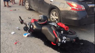 Por traer el casco bajo el brazo, un motociclista resultó severamente lesionado al verse involucrado en un accidente vehicular.