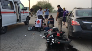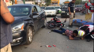 Al llegar al crucero con la avenida Carlos Adrián Avilés, por tratar de ganarle al cambio de luces del semáforo, el motociclista terminó por impactarse contra el costado de un automóvil marca Nissan tipo Áltima.