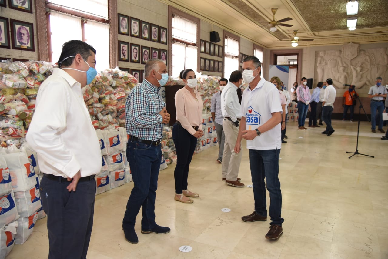El mandatario explicó que las 4,600 despensas recibidas, serán duplicadas por su administración, a fin de llegar a 9,200 paquetes alimentarios, que se sumarán a las 8,800 despensas reunidas durante la semana anterior.