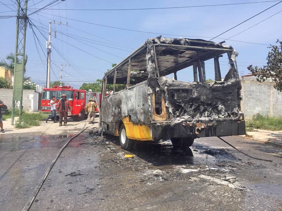 En el siniestro el conductor de la unidad del servicio de transporte público resultó con quemaduras.
