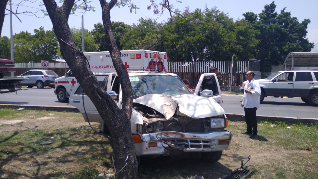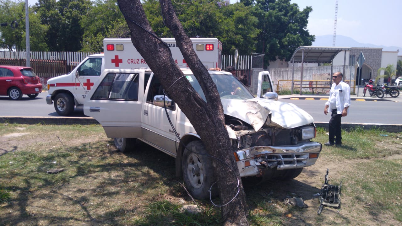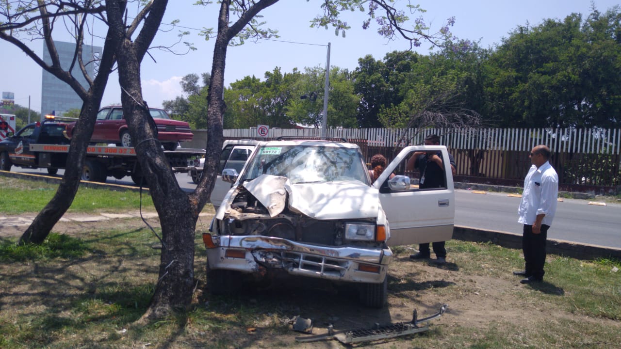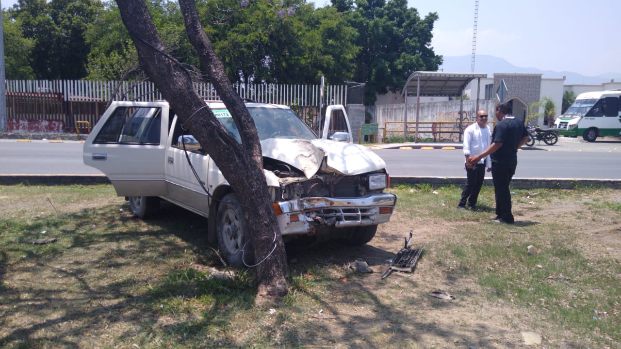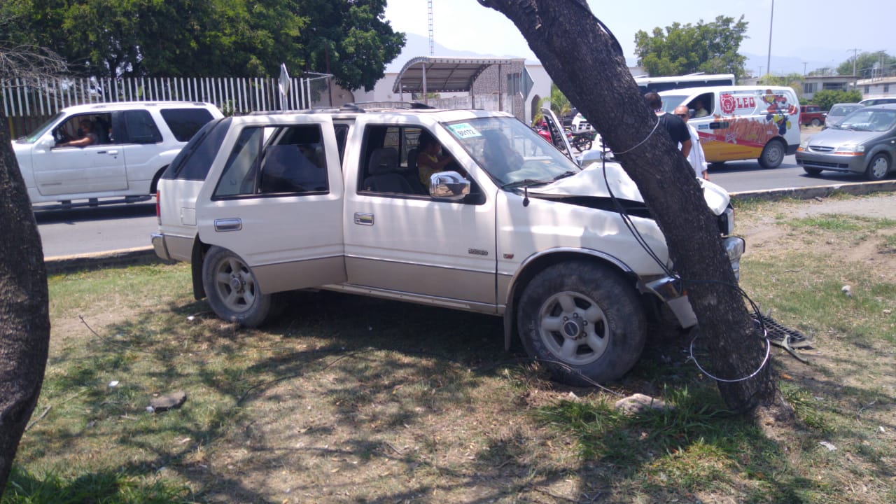 La camioneta Isuzu fuera de control desvió su trayectoria hacia su lado izquierdo y se trepó al camellón central divisor de carriles, en donde detuvo su marcha al chocar contra un árbol.
