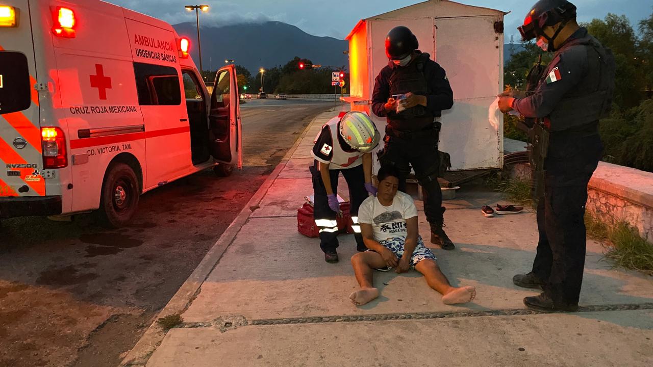 Al golpearse la cabeza contra la banqueta el hombre quedó inconsciente y los vecinos del lugar hicieron el llamado al número de emergencias 911 acudiendo una ambulancia de Cruz Roja Mexicana.
