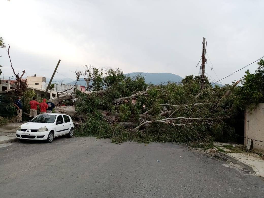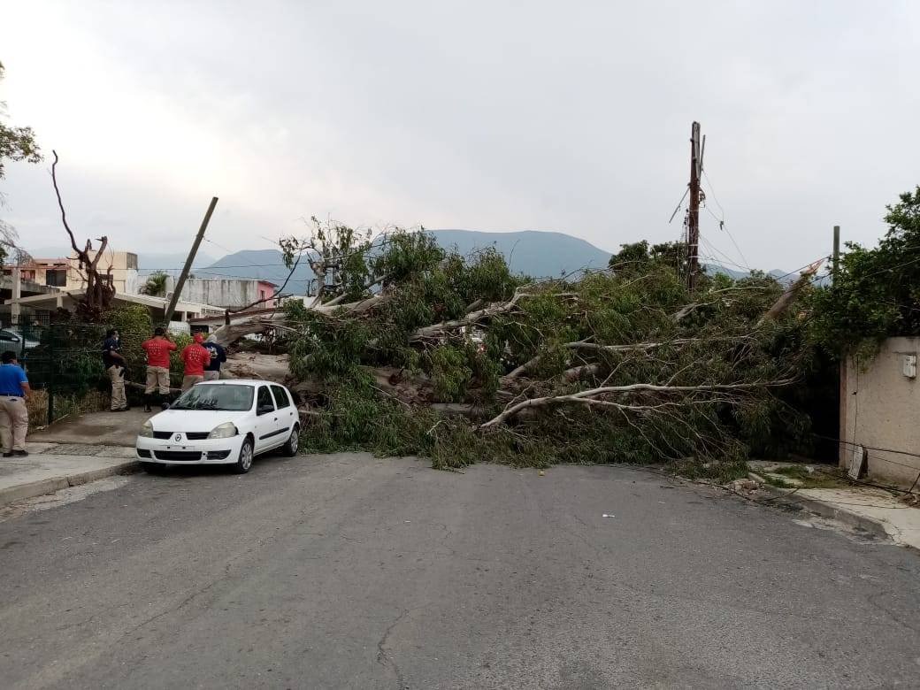 Espectacular era la imagen al terminar el longevo árbol sobre toda la calle qué divide las colonias Guadalupe Mainero y Burócratas dejando totalmente bloqueada la calle 10 Julián de la Cerda.