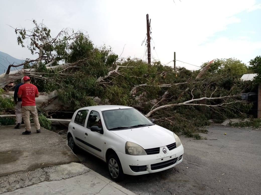Vecinos del lugar mencionaron que ese árbol ya estaba por caerse en cualquier momento por lo viejo y se escuchaba como se iba desprendiendo hasta que esté lunes terminó por caerse en su totalidad ocasionando solo daños materiales sin reporte de personas lesionadas.