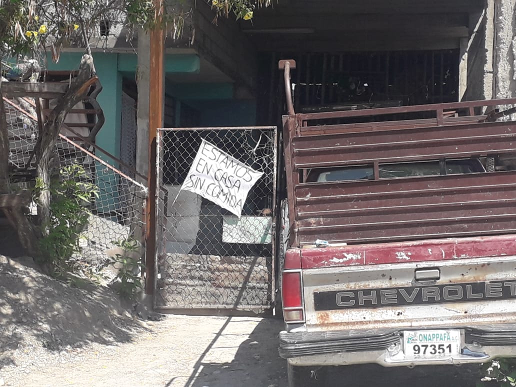 “Estamos en casa sin comida” es el mismo mensaje que hay a las puertas de las casas, en las bardas, las cercas para llamar la atención de las autoridades y recibir apoyo alimentario.