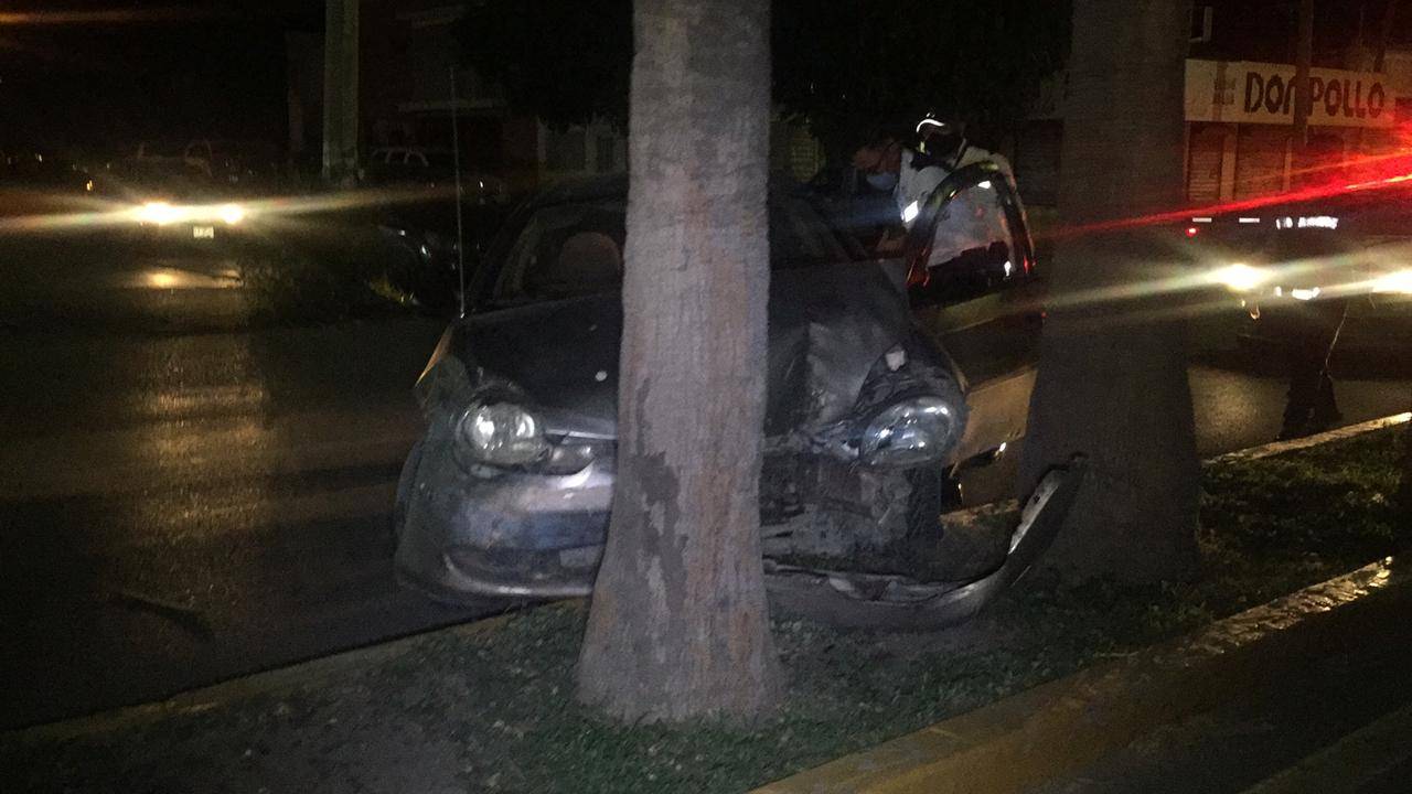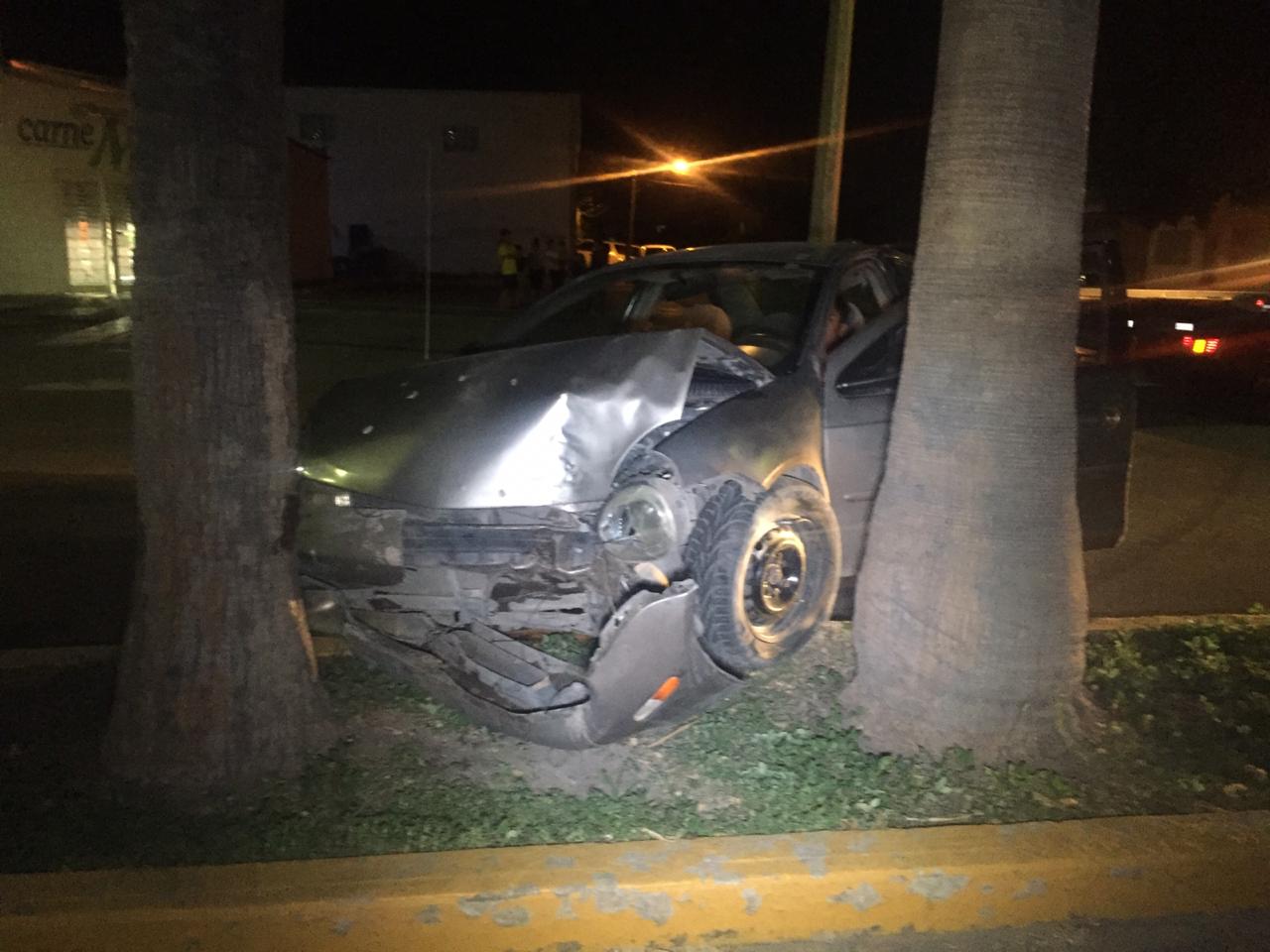 Por tratar de huir después de chocar contra un vehículo último modelo que se encontraba estacionado, un empleado de la Coca Cola terminó hospitalizado al estrellar su automóvil contra una palmera.