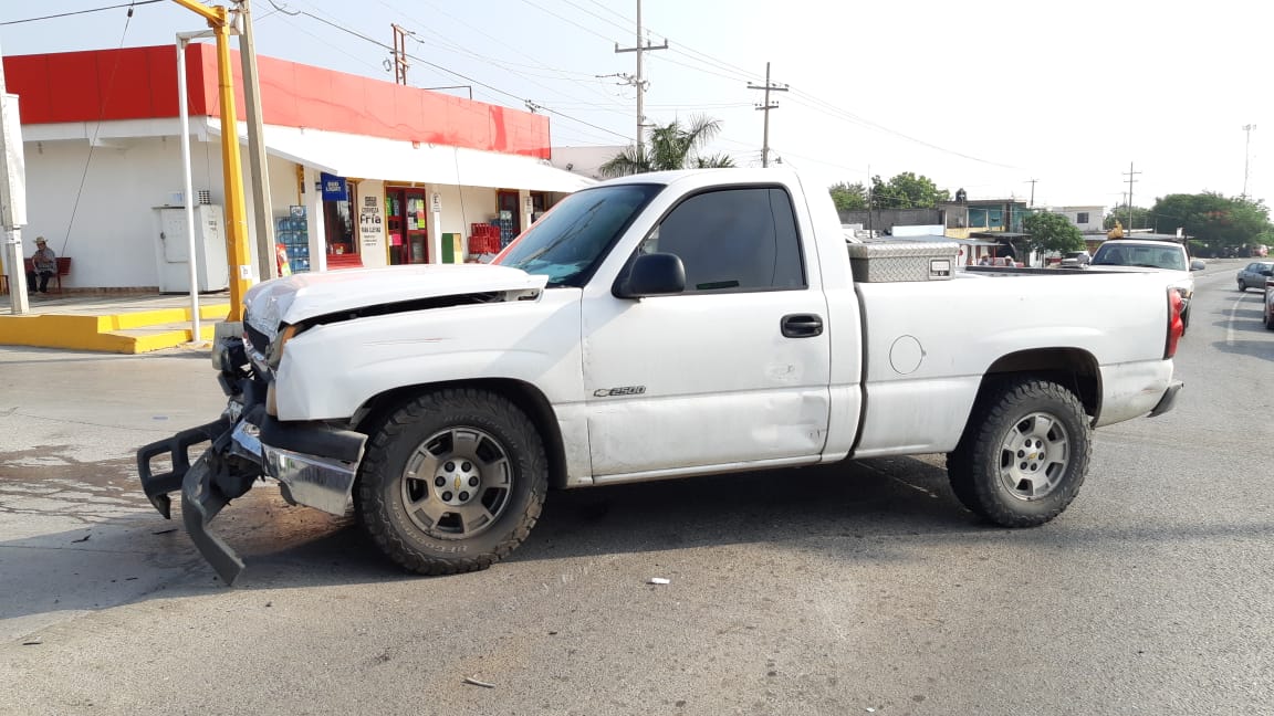 Por ignorar la luz roja de un semáforo, el conductor de una camioneta Pick Up ocasionó un aparatoso accidente en la entrada a la Colonia Estrella.