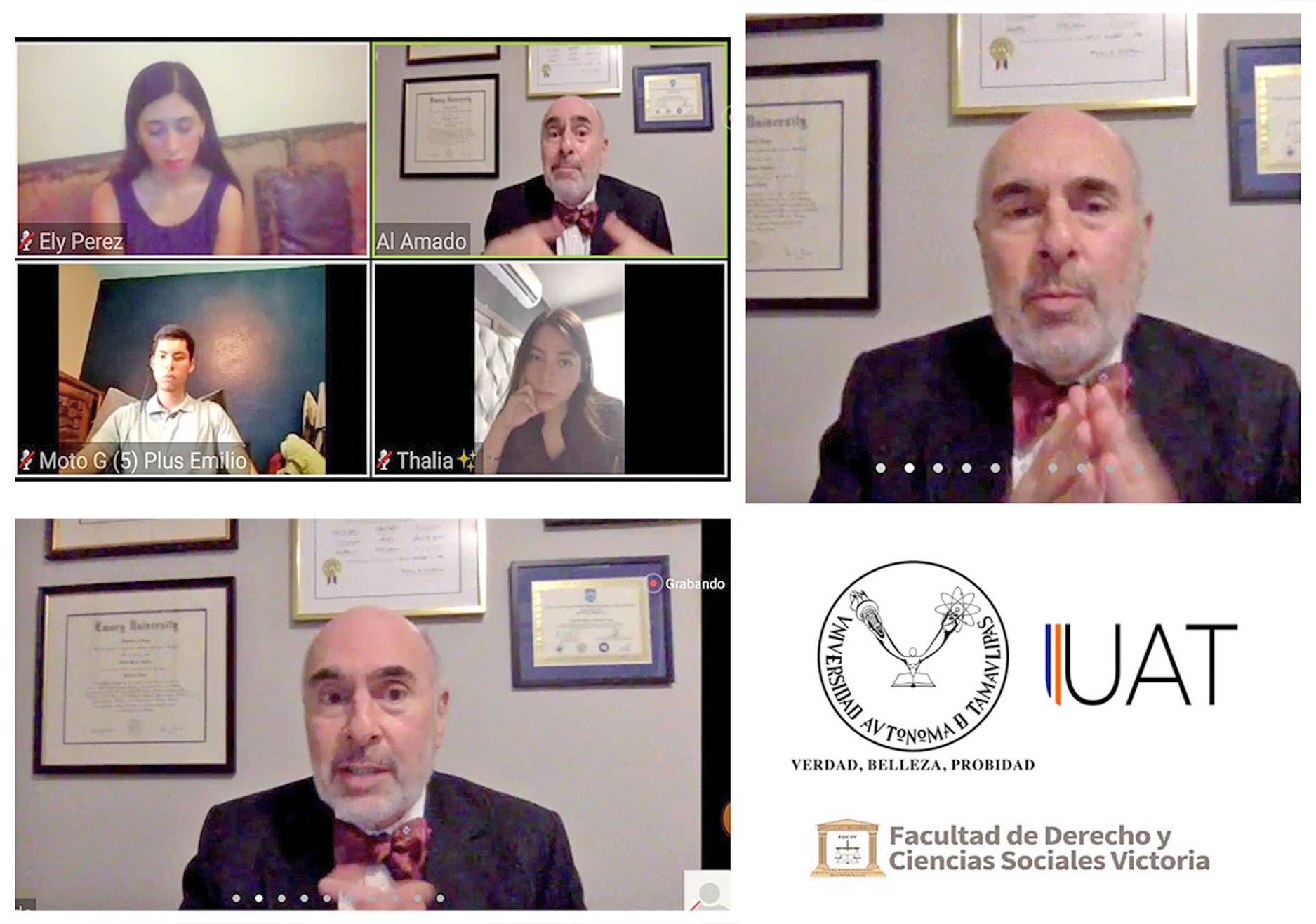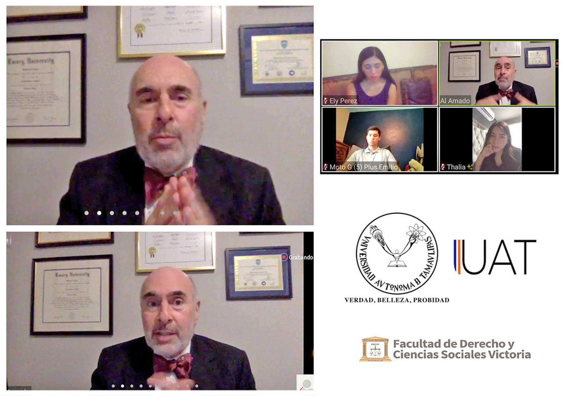 Cómo parte de la Primera Jornada de Conferencias a Distancia que organiza la Facultad de Derecho y Ciencias Sociales Victoria (FDCSV) de la Universidad Autónoma de Tamaulipas, (UAT)), el Dr. Al Amado impartió el tema “La teoría del caso”, a través de la plataforma de zoom.