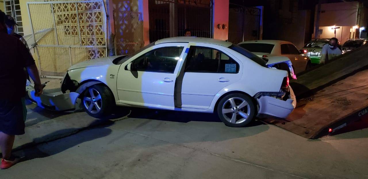 El aparatoso accidente que dejó cuantiosos daños materiales ocurrió en la calle Pino Suárez y Vicente Benavides del fraccionamiento Nueva Aurora.
