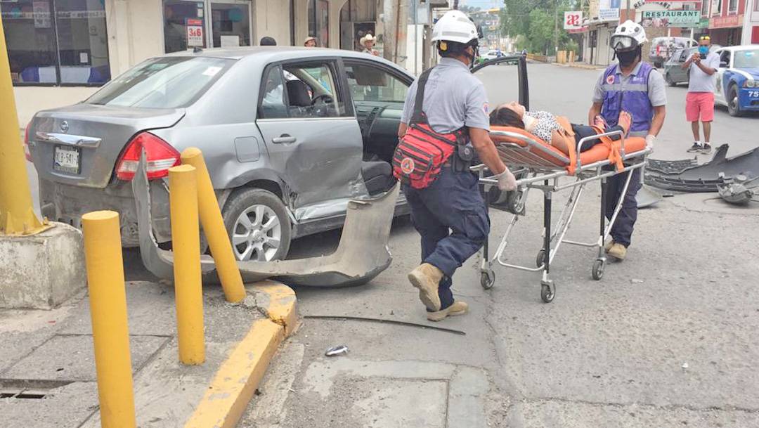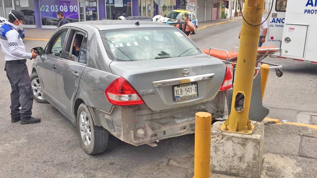 El accidente ocurrió cuando una joven mujer hacía circular su automóvil marca Nissan tipo Áltima color azul por la calle Ocho en sentido de sur a norte.