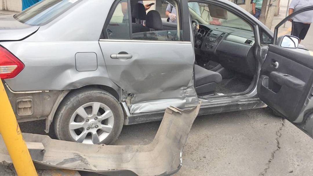 Tras ser impactado el vehículo Tiida sale proyectado y terminó por estrellarse con la parte posterior contra unos protectores metálicos y la base de concreto del semáforo.