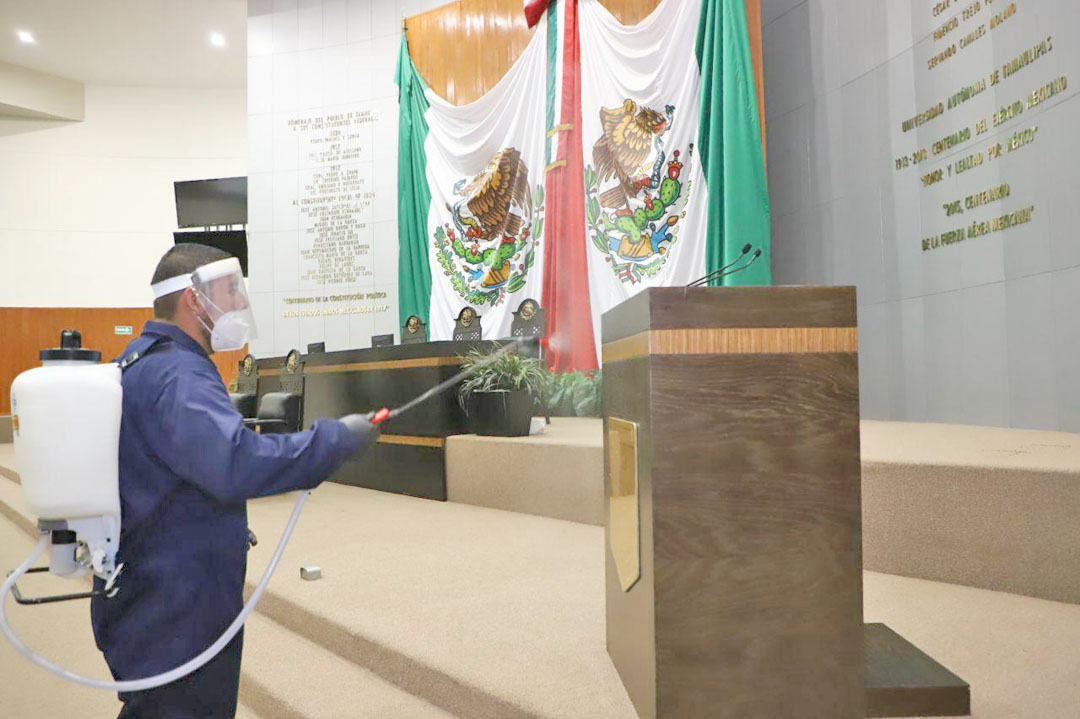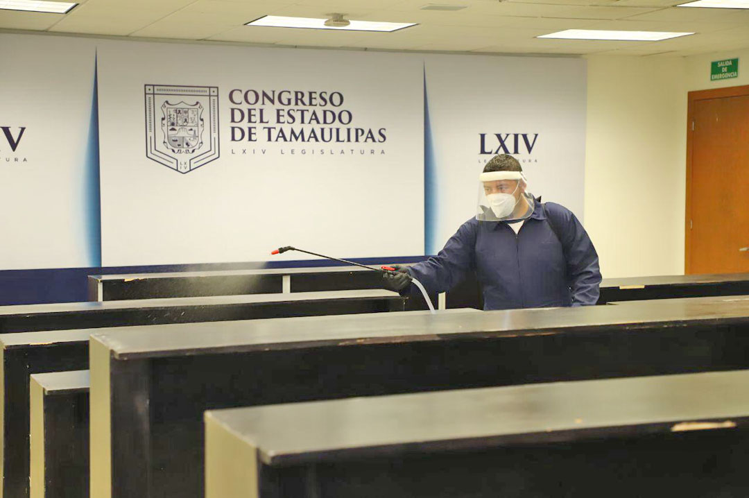Por tercera ocasión se realizaron acciones de sanitización en el Congreso del Estado, al continuar con las medidas sanitarias recomendadas por la Secretaría de Salud en Tamaulipas.