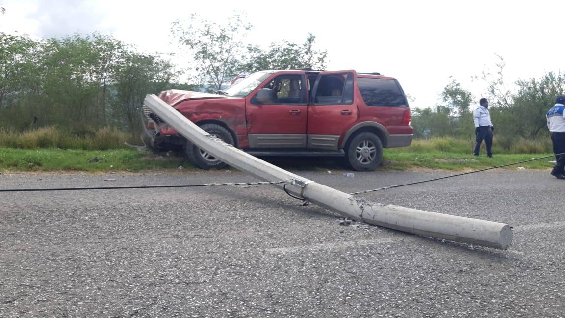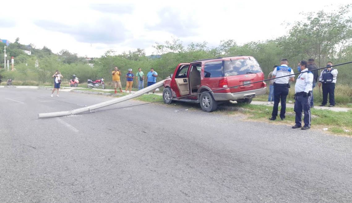 Por circular a exceso de velocidad y en presunto estado de ebriedad, una persona del sexo masculino que venía de velar a su esposa terminó por estrellar su camioneta contra un poste de concreto derribándolo por completo.