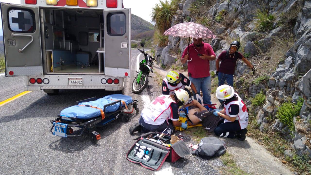 Tras el impacto el motociclista salió proyectado y cayó al suelo causándose diversas lesiones de las cuales fue atendido por paramédicos de Cruz Roja Mexicana.