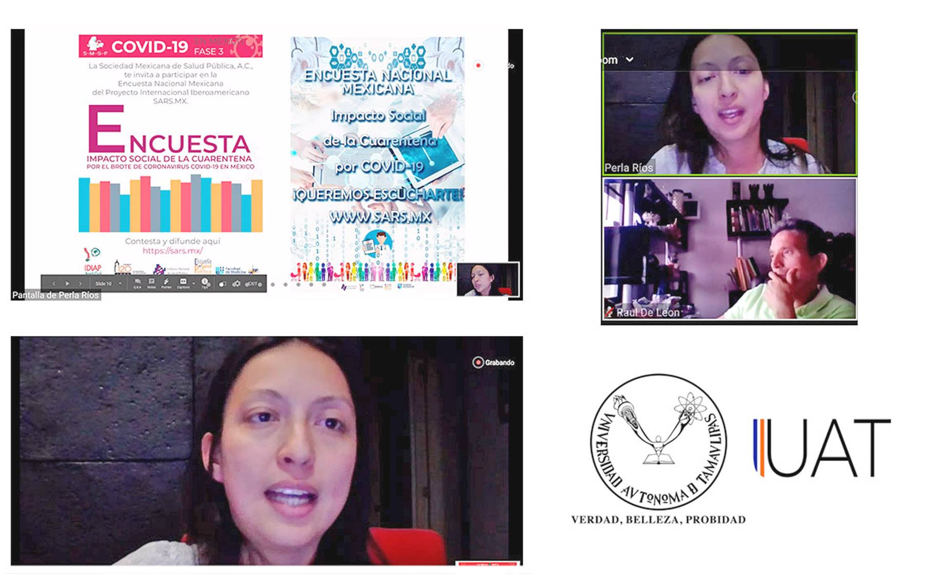 La Universidad Autónoma de Tamaulipas (UAT) a través de la Facultad de Medicina de Tampico, presentó la ponencia “Impacto social generado en la población. Durante y después del confinamiento aplicado como medida de prevención y control del SARS-COV-2 en Brasil, Chile, Ecuador, España y México”.