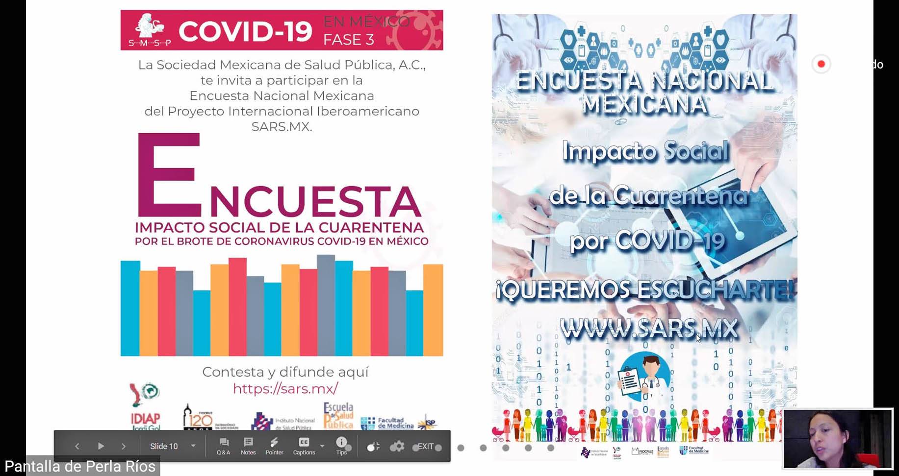La charla fue impartida a través de la plataforma Zoom por la Dra. Perla Ríos Villalba, especialista en Salud Pública y Medicina Preventiva, así como Coordinadora de Vigilancia Epidemiológica de Petróleos Mexicanos (PEMEX), como parte de las actividades programadas en la semana de conferencias “COVID-19 y Entidades Cardio-Metabólicas”.