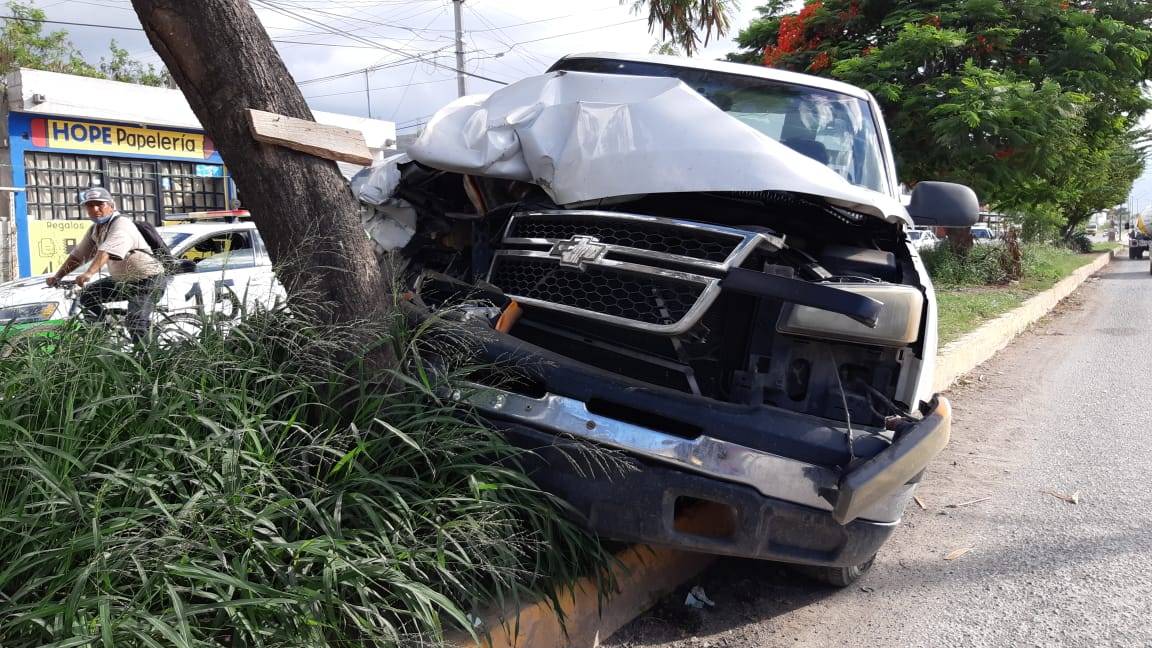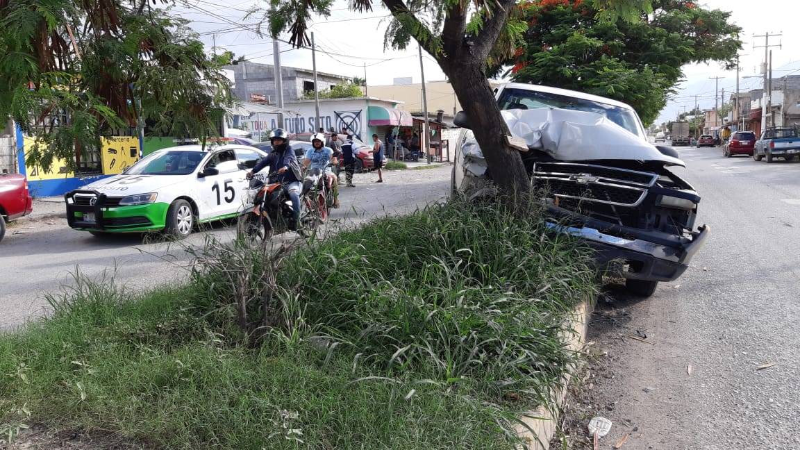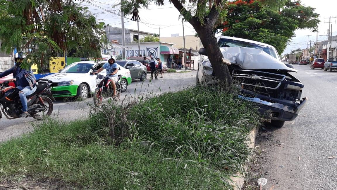 Un árbol frustró la huida del conductor de una camioneta, el cual escapaba del lugar en donde chocó contra un microbús estacionado.