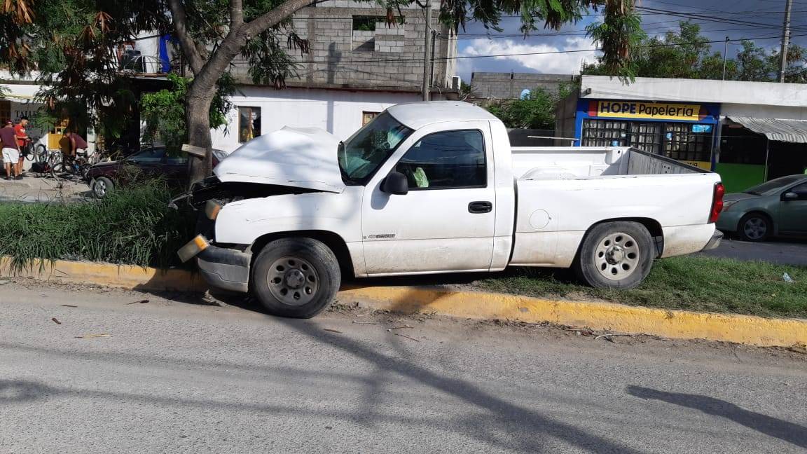 A la altura de la colonia Nuevas Playas el conductor de la camioneta pierde el control del volante y al desviar su trayectoria a la derecha se estrella contra la parte posterior de un microbús que se encontraba estacionado.