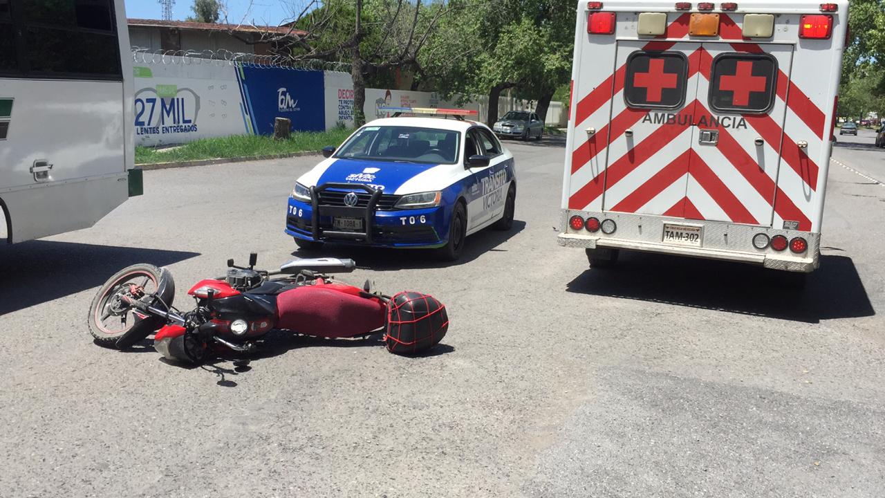 El accidente ocurrió cuando un empleado de Banco Azteca a bordo de una motocicleta marca Itálika circulaba por el bulevar Praxedis Balboa en sentido de oriente a poniente.