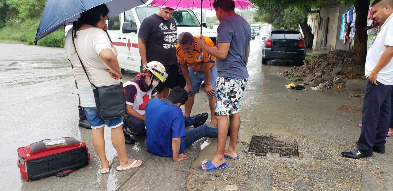 Para atender al motociclista lesionado al lugar acudieron paramédicos de Cruz Roja Mexicana.