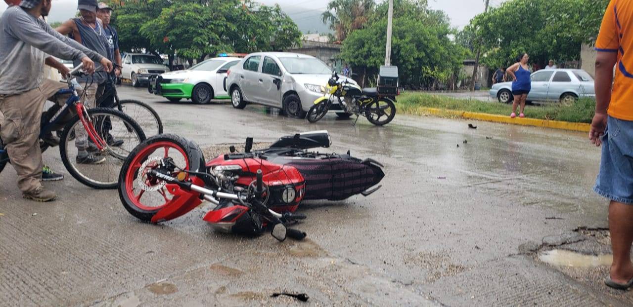 Un motociclista resultó lesionado después de estrellarse contra el costado de un automóvil en la colonia Casas Blancas.