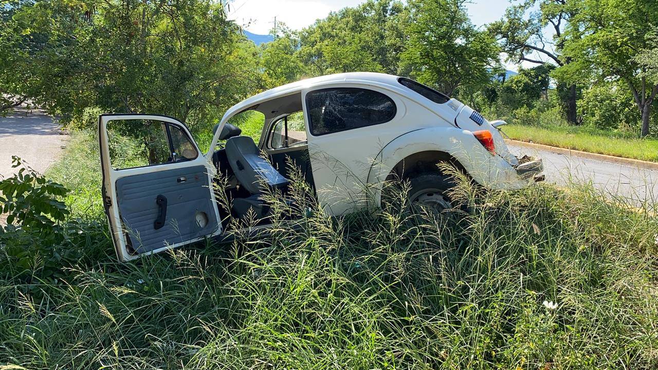 Al llegar a la altura de la calle 20, el vocho entra a una curva y el conductor pierde el control del volante.