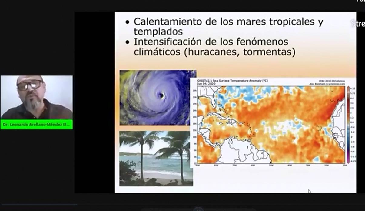 Abundó en su ponencia que el calentamiento global hace que se calienten los mares templados y tropicales y se intensifiquen los fenómenos climatológicos.