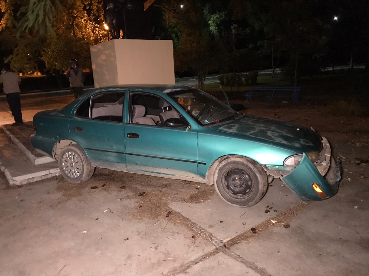 El vehículo sin control avanzó varios metros sobre la plaza y terminó por estrellarse contra la escalinata de un monumento que se encuentra en el centro de dicho lugar.