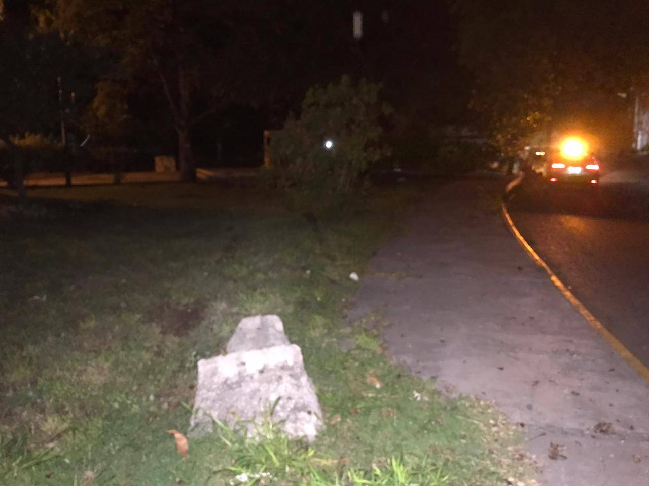 Después de que a su conductor "se le acabara" la superficie de rodamiento, al pie de un monumento quedó abandonado un destrozado automóvil.