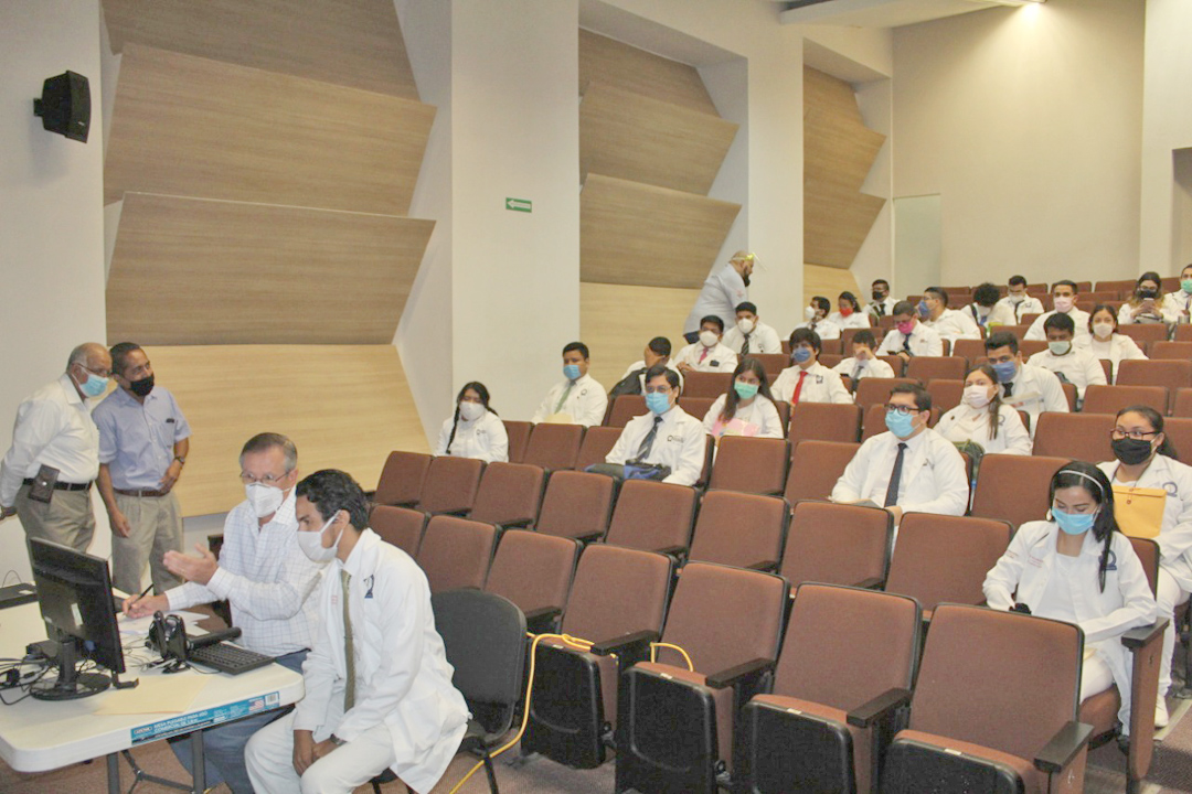 Por videoconferencia presidieron la apertura del acto las autoridades de salud y el Director del plantel, Dr. Enrique Álvarez Viaña, quien expresó su reconocimiento a los alumnos por llegar a esta importante etapa de su carrera.