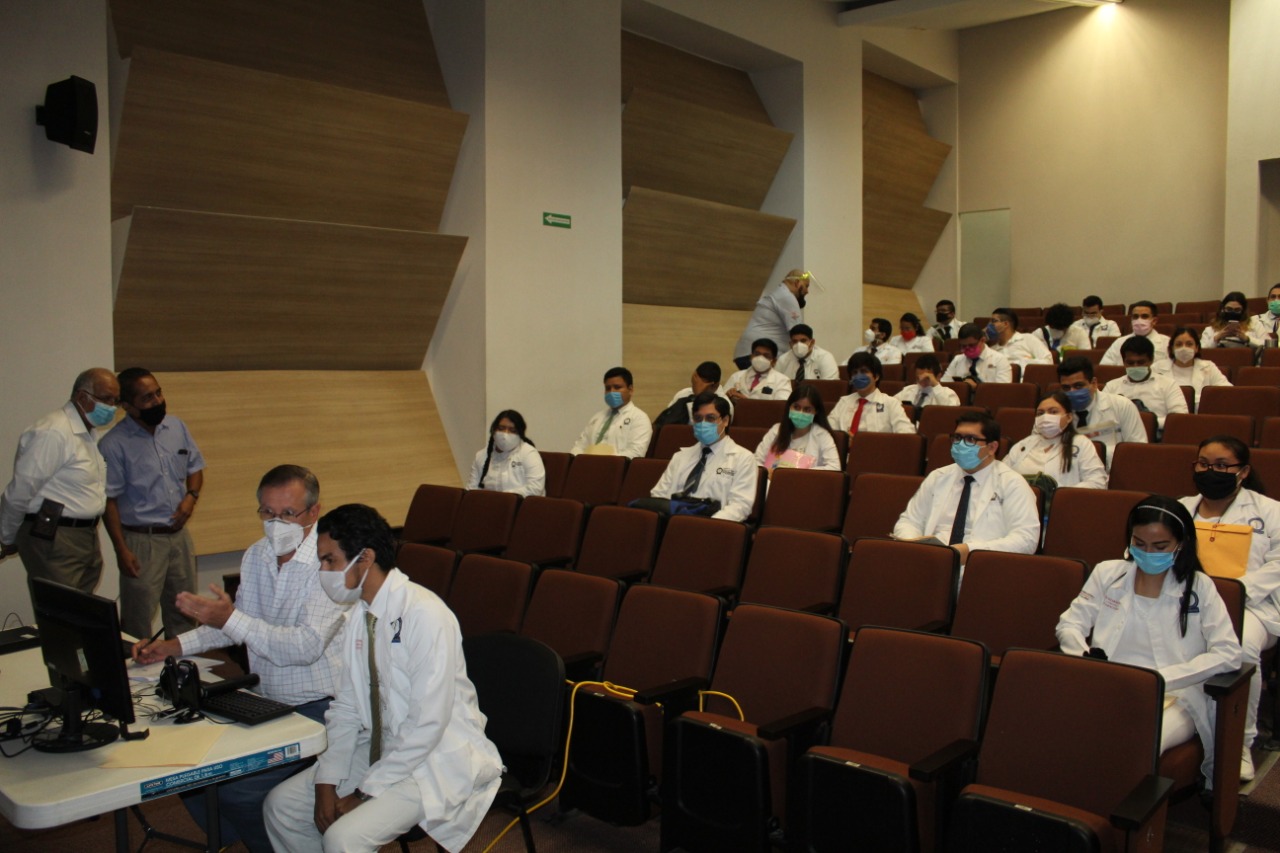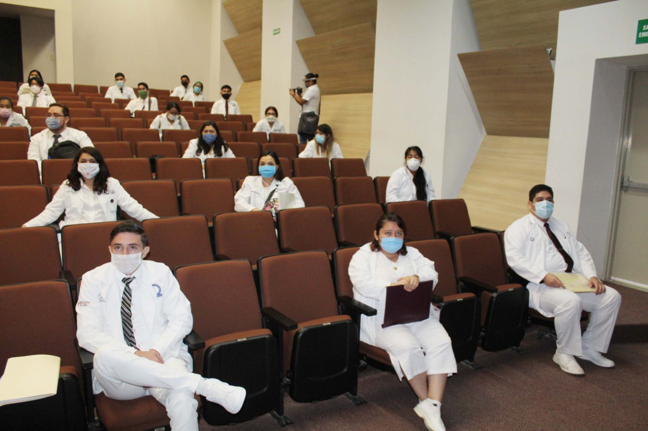 Por videoconferencia presidieron la apertura del acto las autoridades de salud y el Director del plantel, Dr. Enrique Álvarez Viaña, quien expresó su reconocimiento a los alumnos por llegar a esta importante etapa de su carrera.