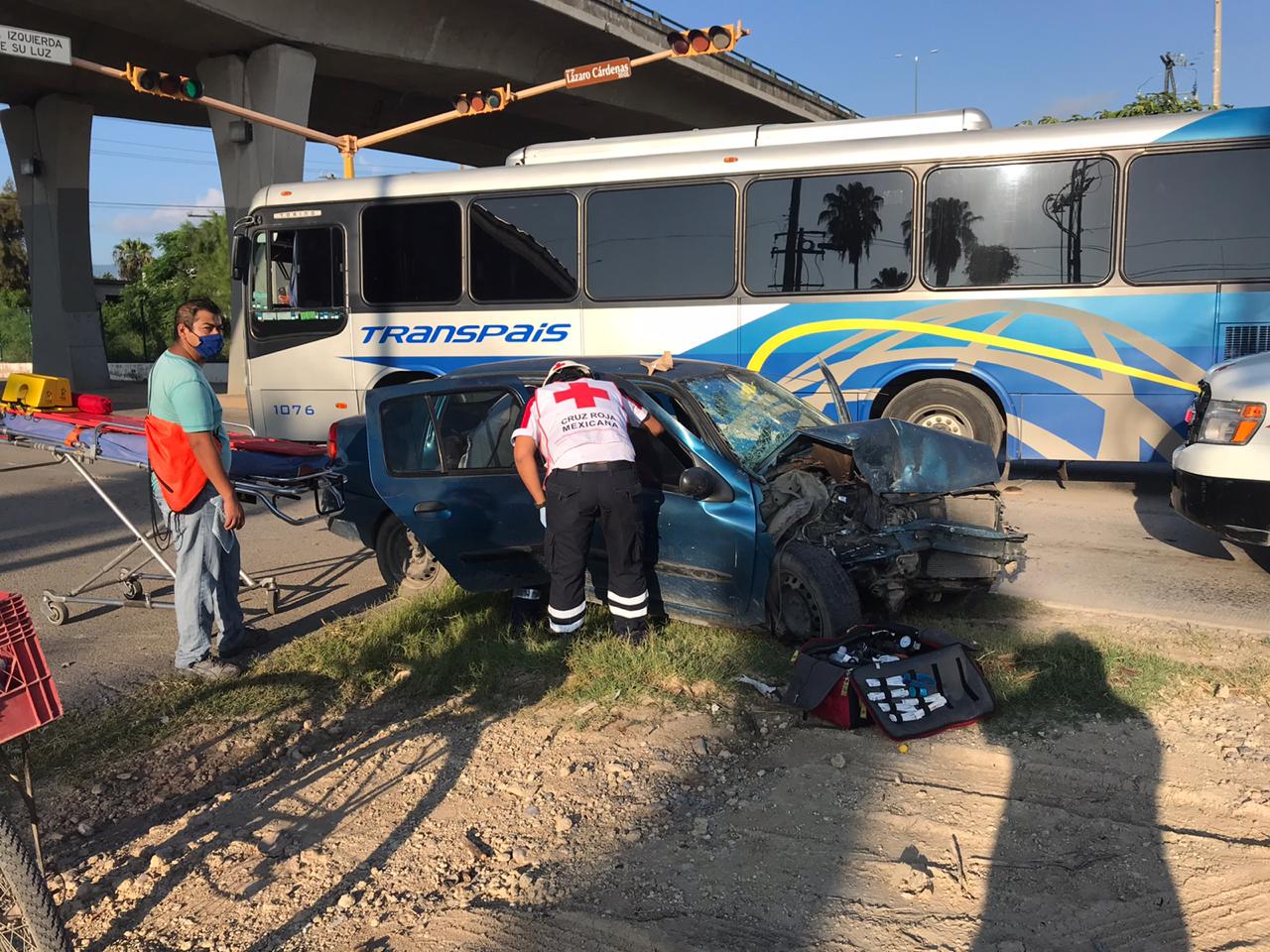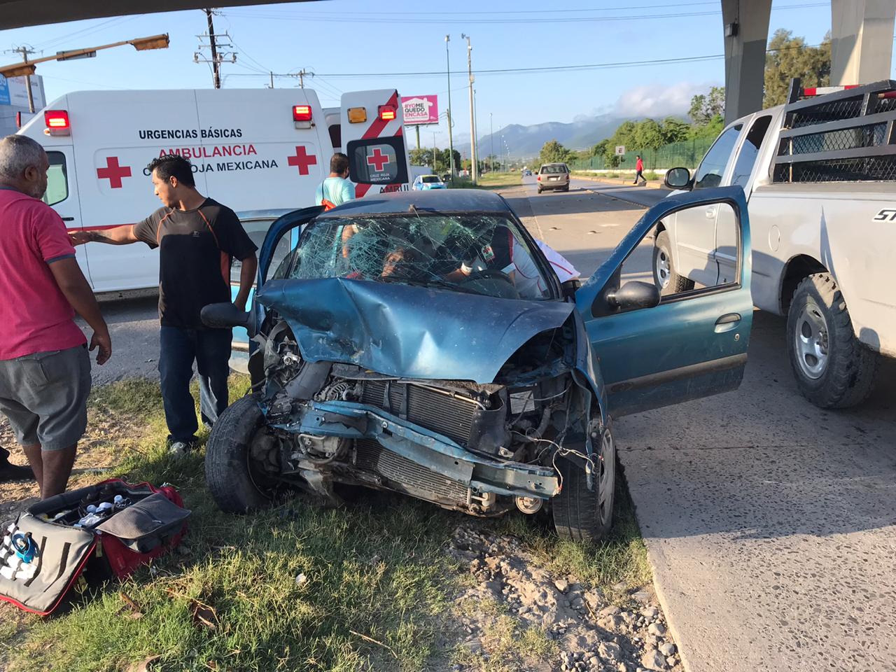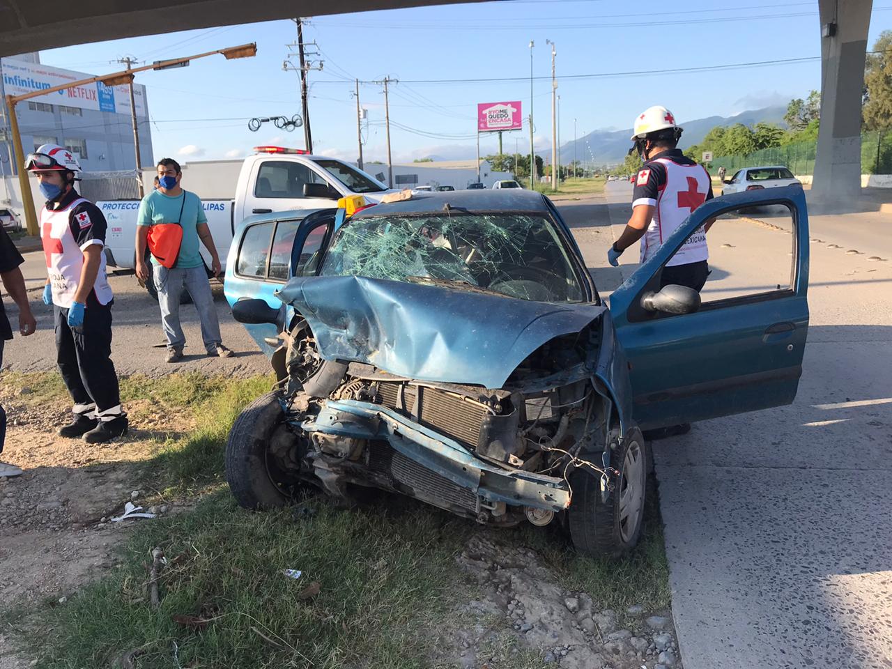 Una mujer que viajaba en calidad de acompañante a bordo del Platina quedó atrapada dentro del vehículo siendo rescatada por paramédicos de Cruz Roja mexicana para ser trasladada a un hospital.