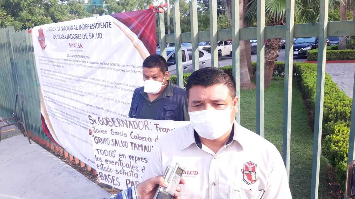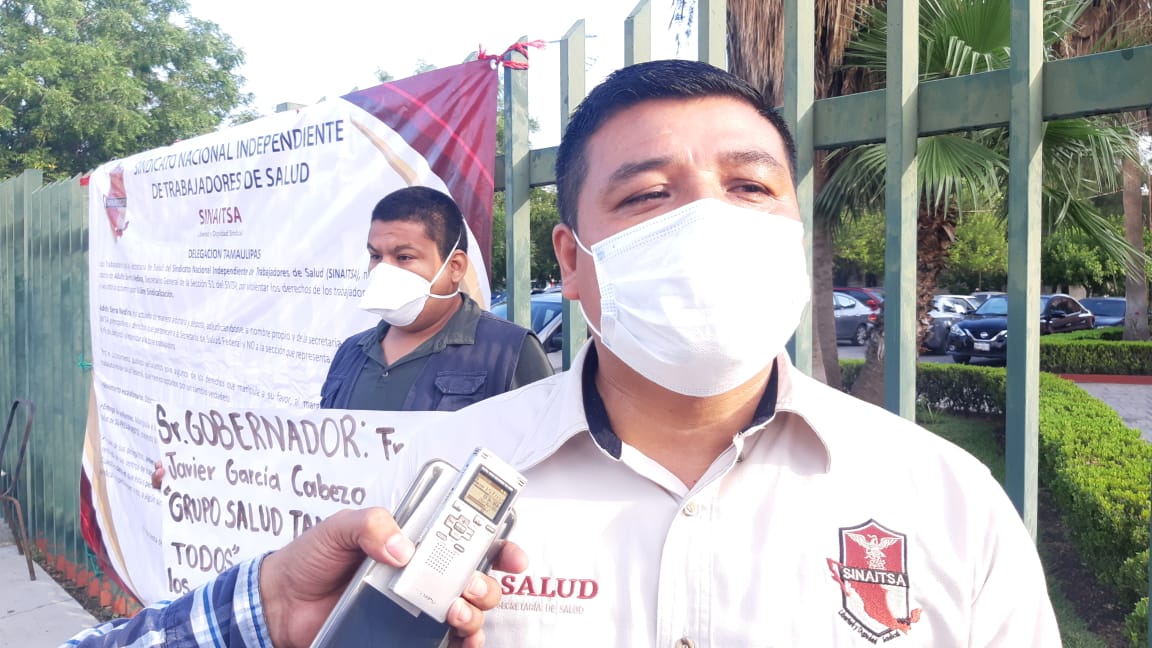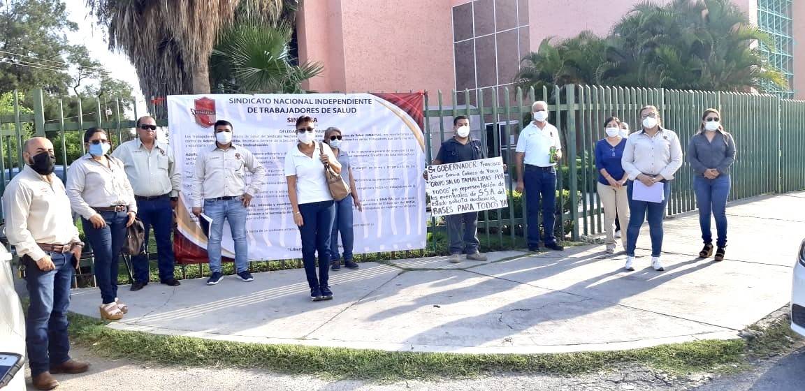 El grupo de trabajadores del Sector Salud fue encabezado por el representante del Comité Ejecutivo Nacional en Tamaulipas del Sindicato Independiente de Trabajadores de Salud Víctor Hugo Hernández Hernández.