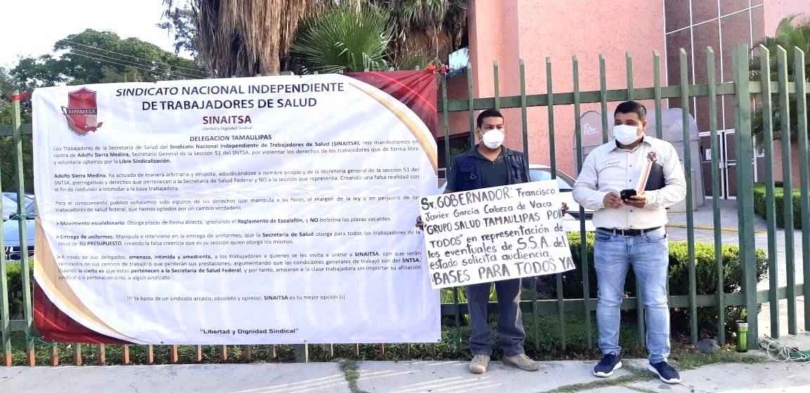 Acusando al secretario general de la Sección 51 del Sindicato de Trabajadores de la Secretaría de Salud Adolfo Sierra Medina de malos manejos y beneficiar a sus más allegados, un grupo de integrantes del Sindicato Independiente de Trabajadores de Salud se manifestaron en el exterior de la Jurisdicción Sanitaria Número Uno de La Loma ubicada en esta ciudad capital.