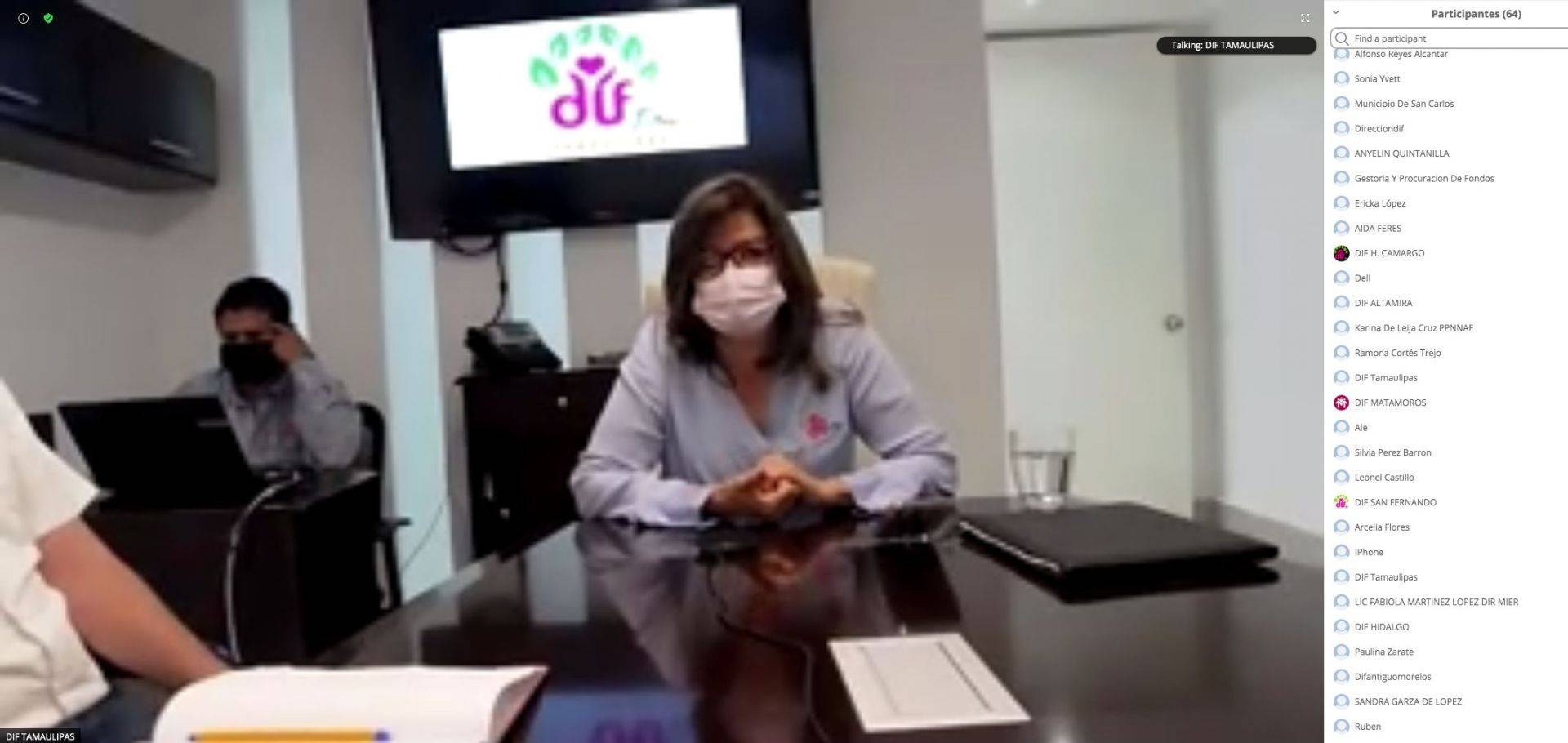 A través de una videoconferencia se llevó a cabo la cuartas reunión estatal de Presidentas, Presidentes y Directores de DIF Municipales, convocada por el Sistema DIF Tamaulipas, que preside Mariana Gómez de García Cabeza de Vaca, con el objetivo de establecer líneas de acción para el buen funcionamiento de los diferentes programas sociales a favor de las familias tamaulipecas, durante la contingencia por COVID-19