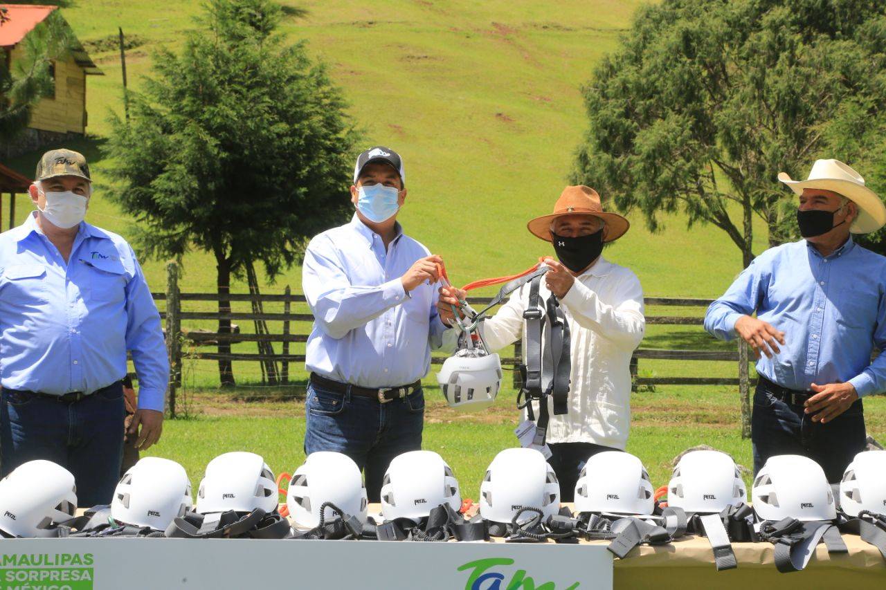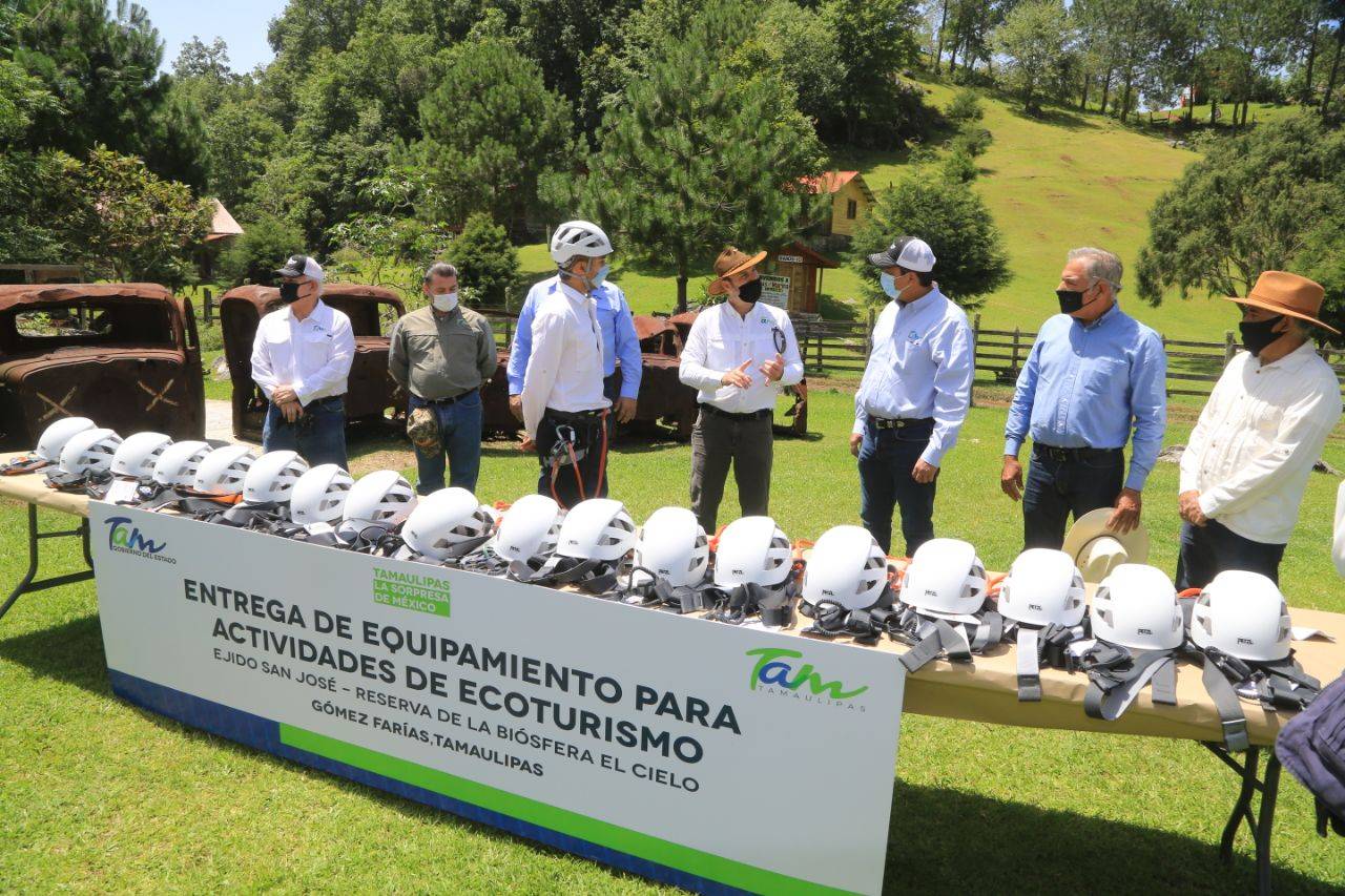 Ej. San José, Gómez Farías; Tam. En gira de trabajo este fin de semana, el gobernador, Francisco García Cabeza de Vaca, entregó equipamiento para la práctica de ecoturismo en la Reserva de la Biósfera El Cielo, tras una solicitud realizada por los habitantes del ejido San José, quienes operan los servicios turísticos en la zona.